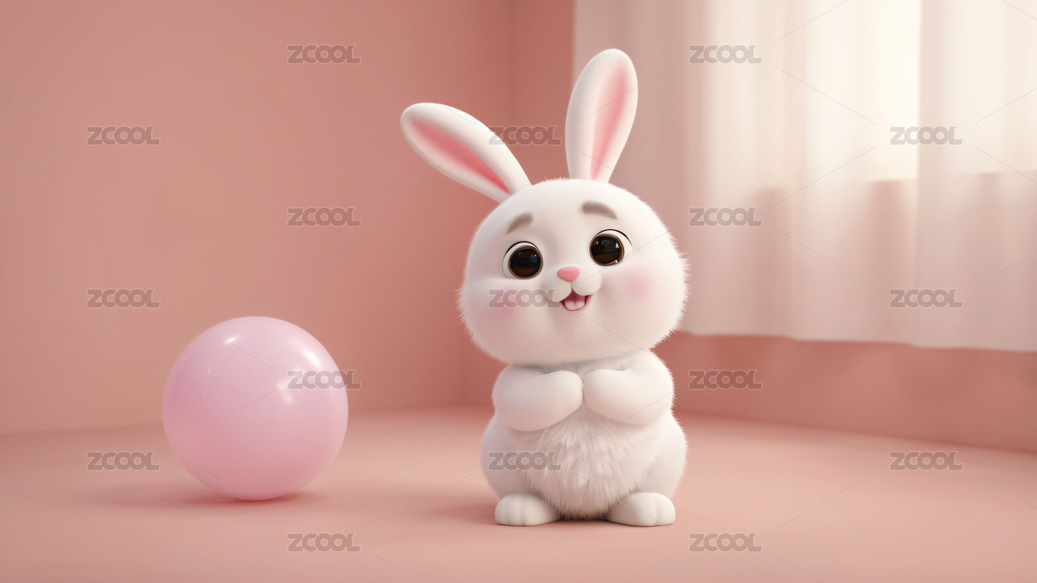 萌系粉色小兔