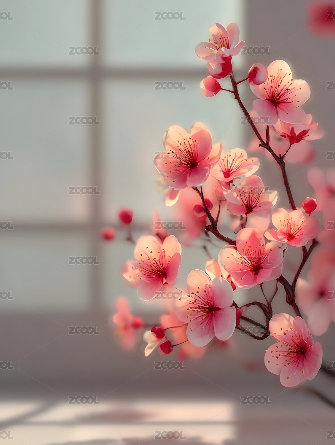 窗前粉色樱花盛开