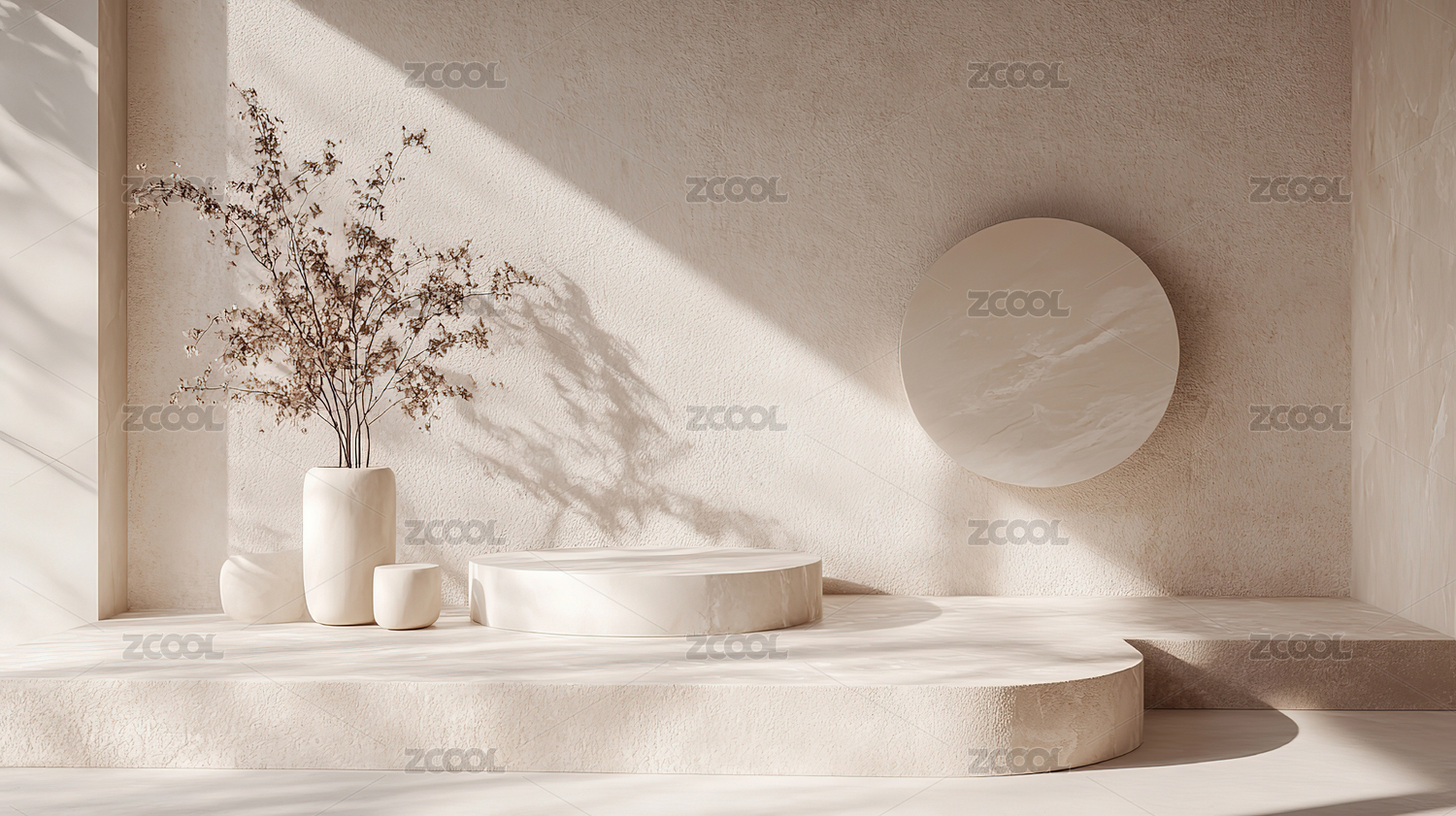 光影,空间,室内,装饰,植物,背景,艺术,简约,展台,米色