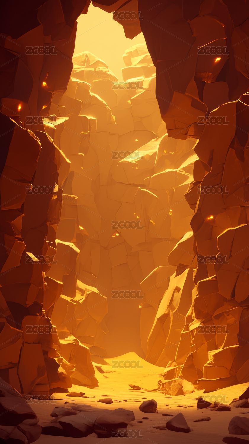 黑色悬崖山谷流淌火焰岩浆的立体模型沙盘画