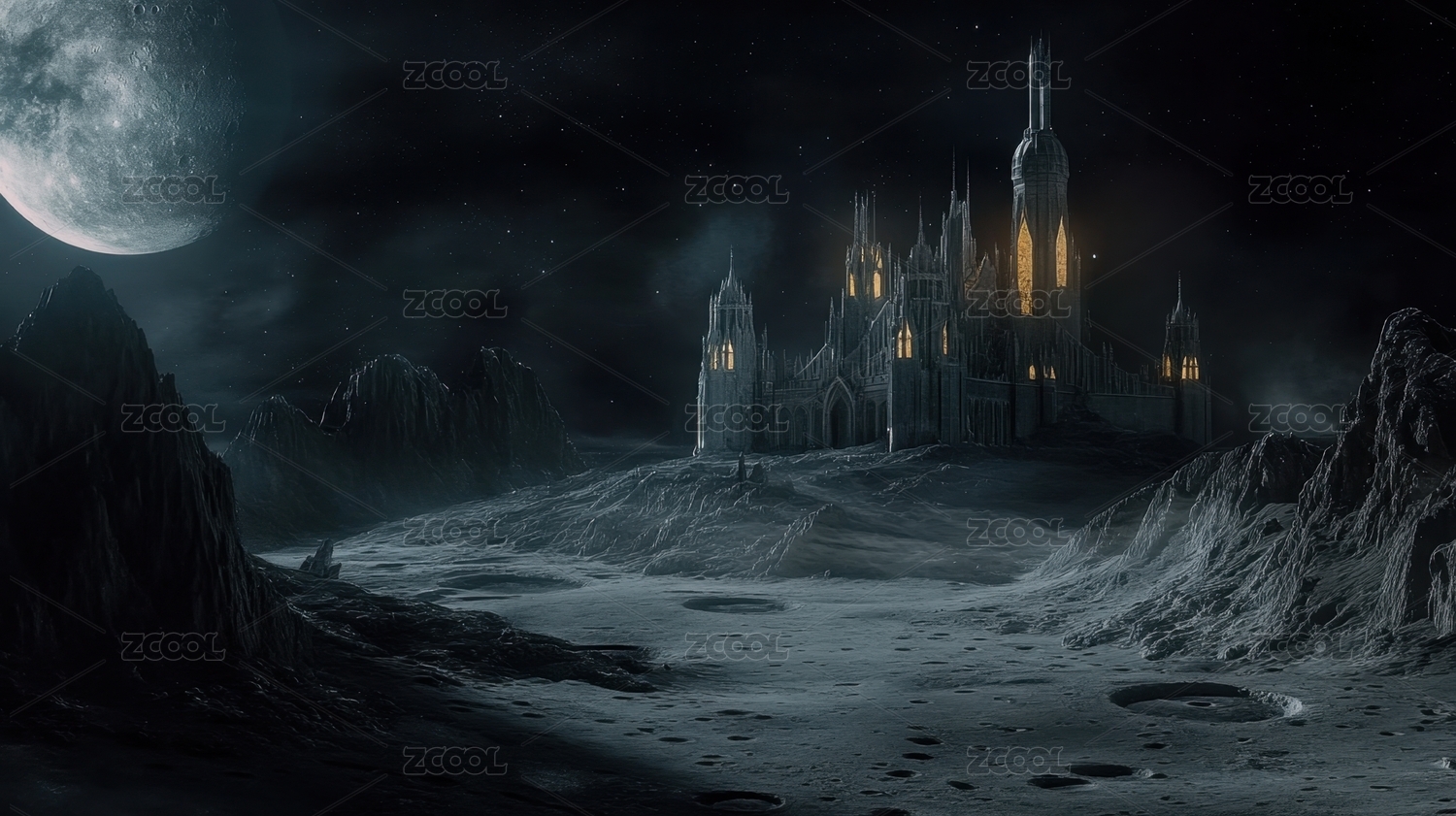 宏伟,建筑,高大,幻想,雾,人,神秘,景观,天空,阴云