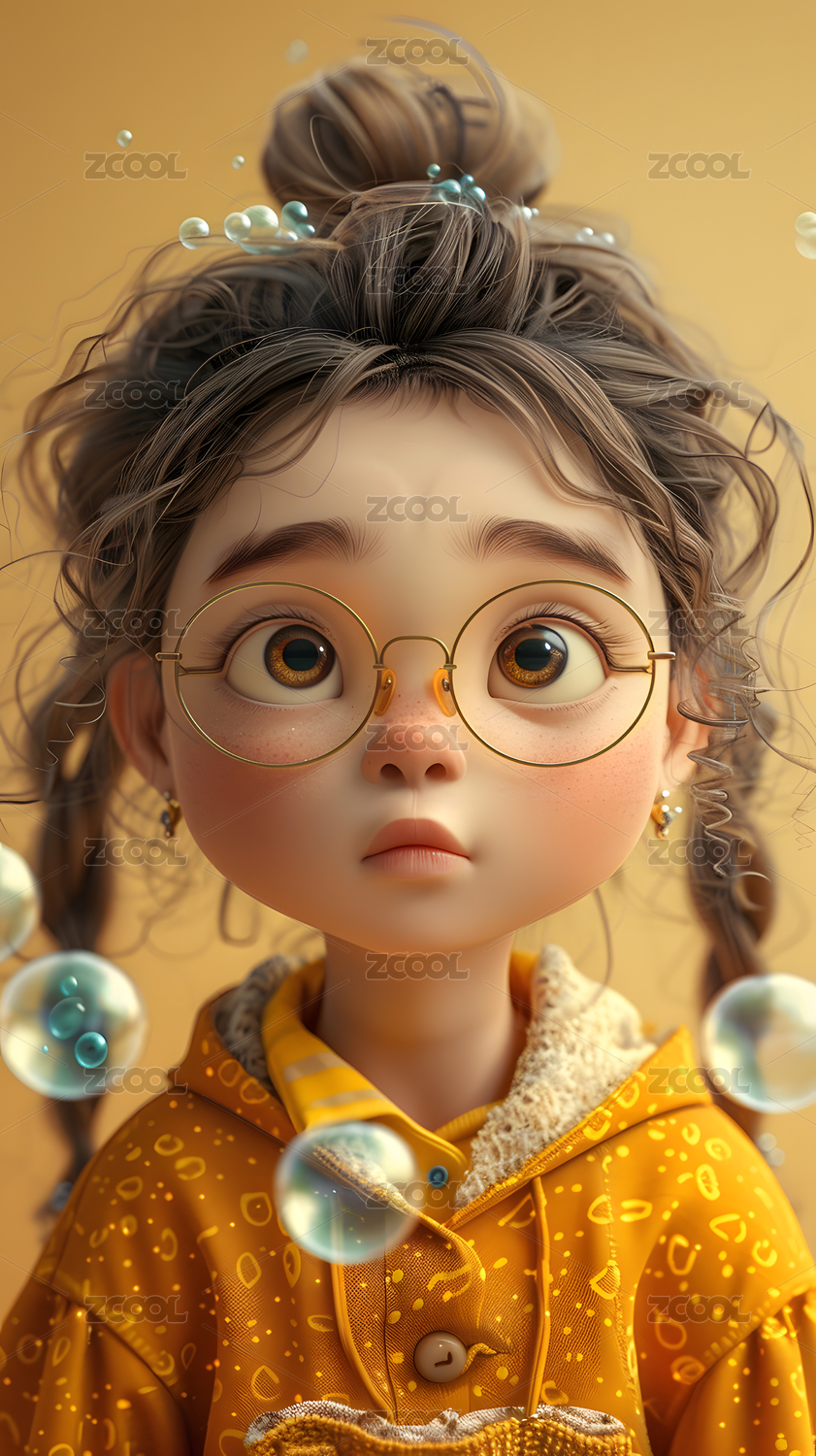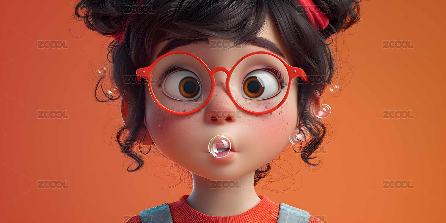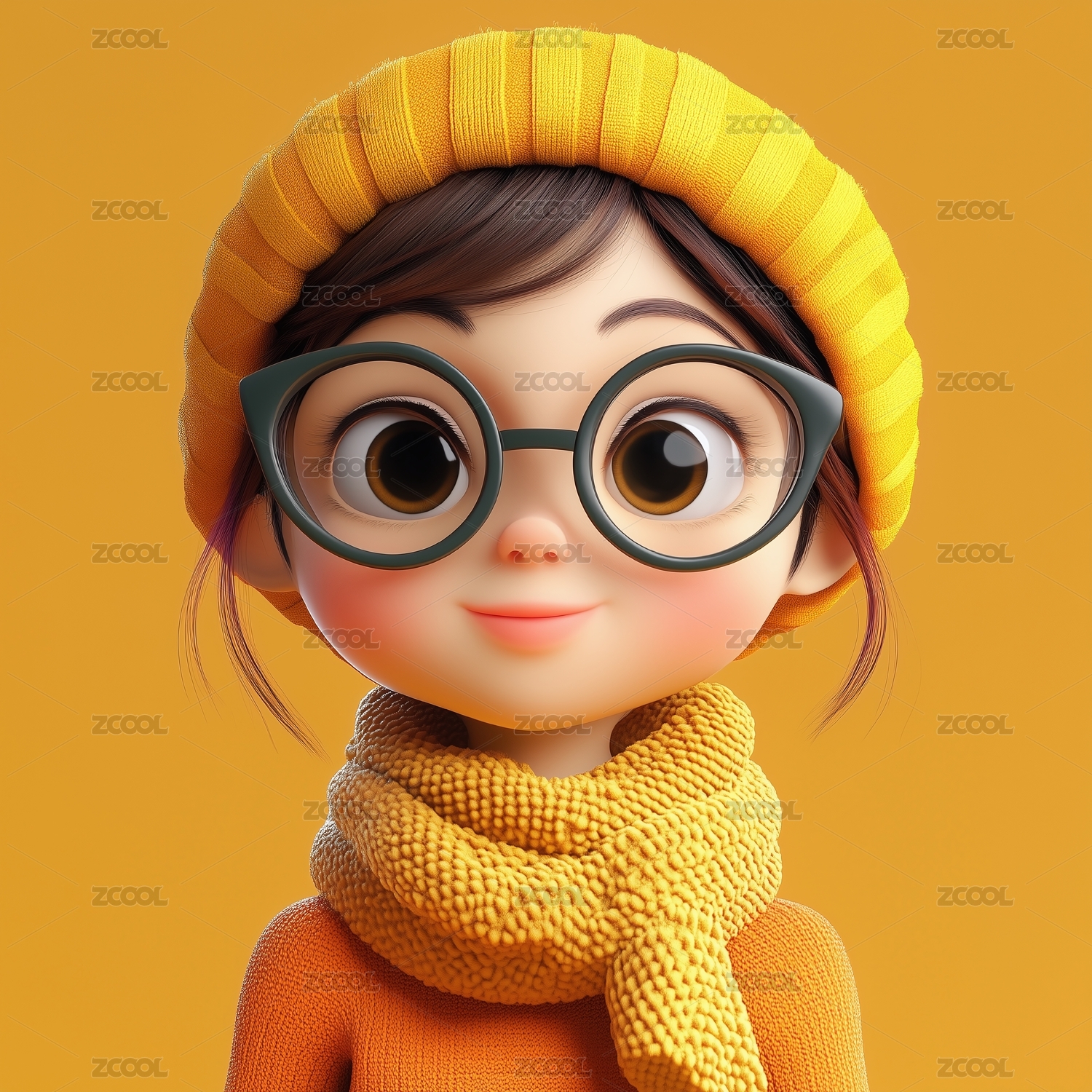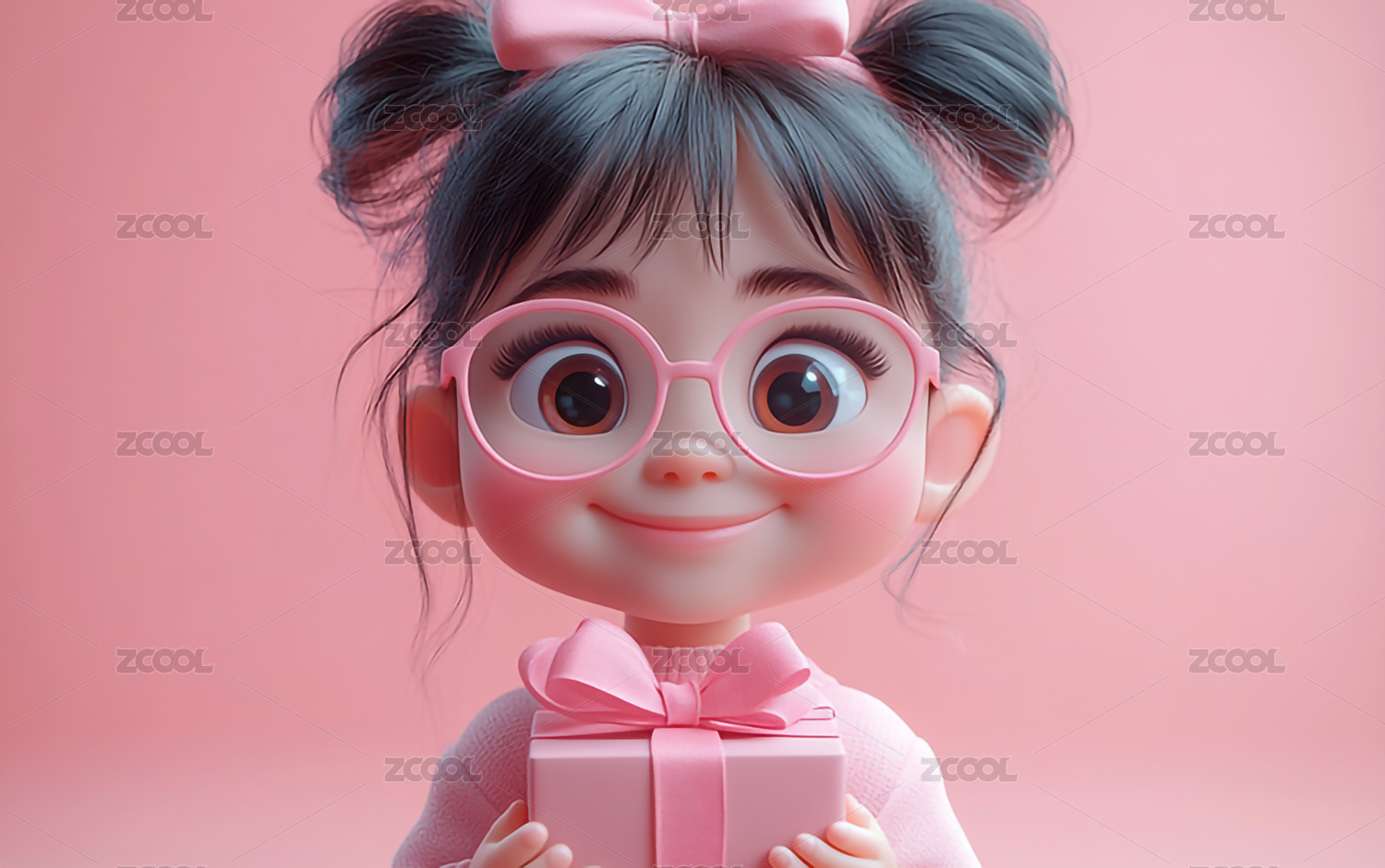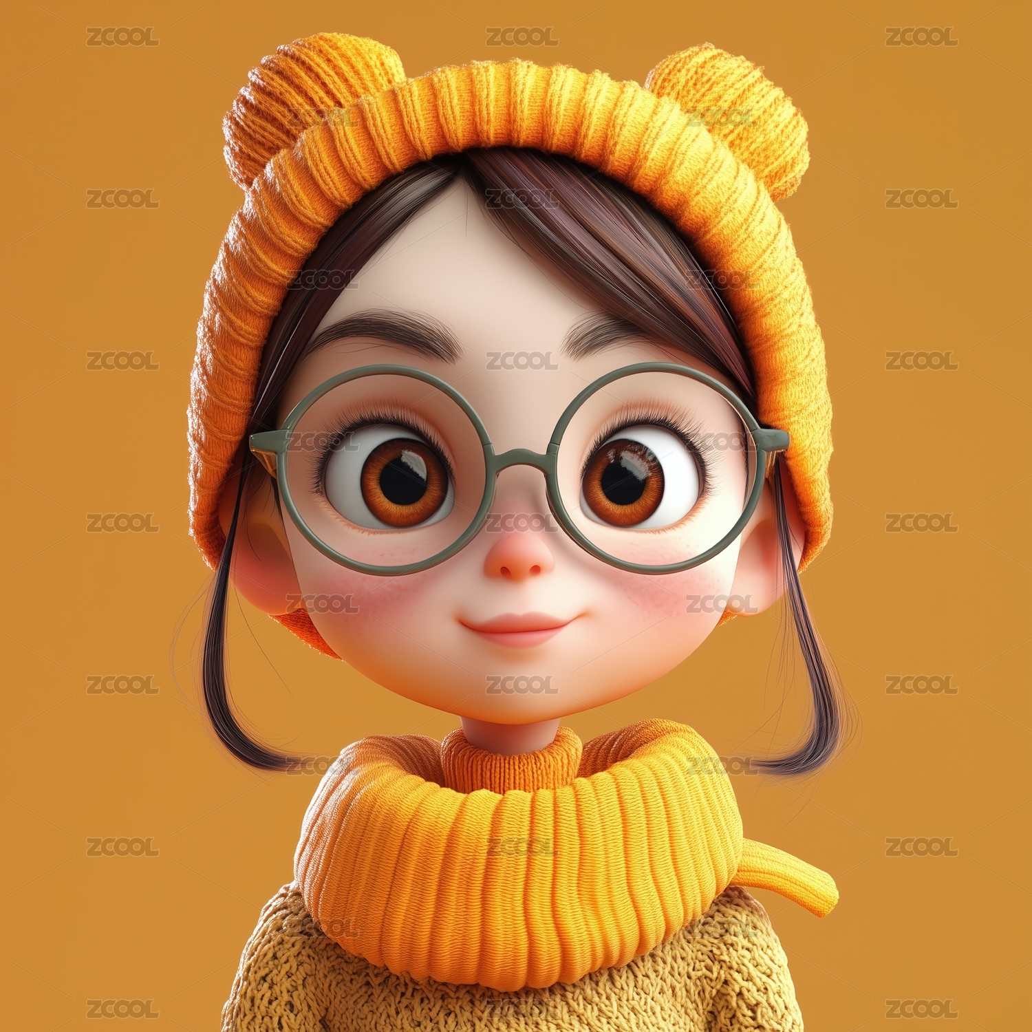 三维立体,3D,插画,卡通,女孩,眼镜,艺术,可爱,数字艺术,AIGC
