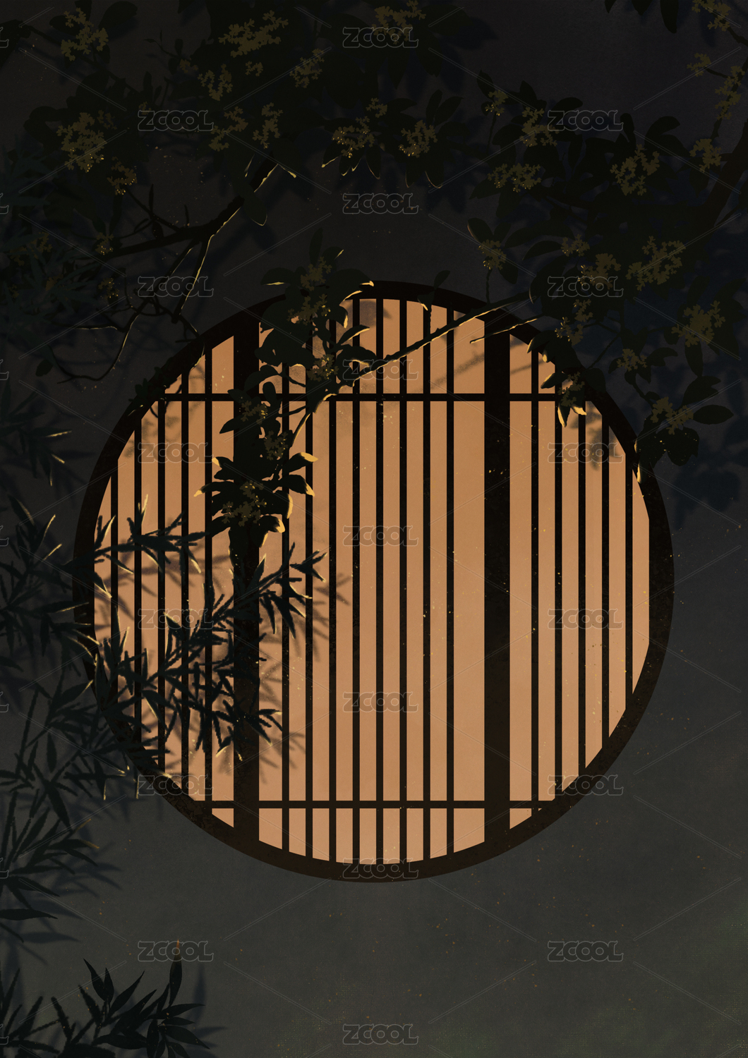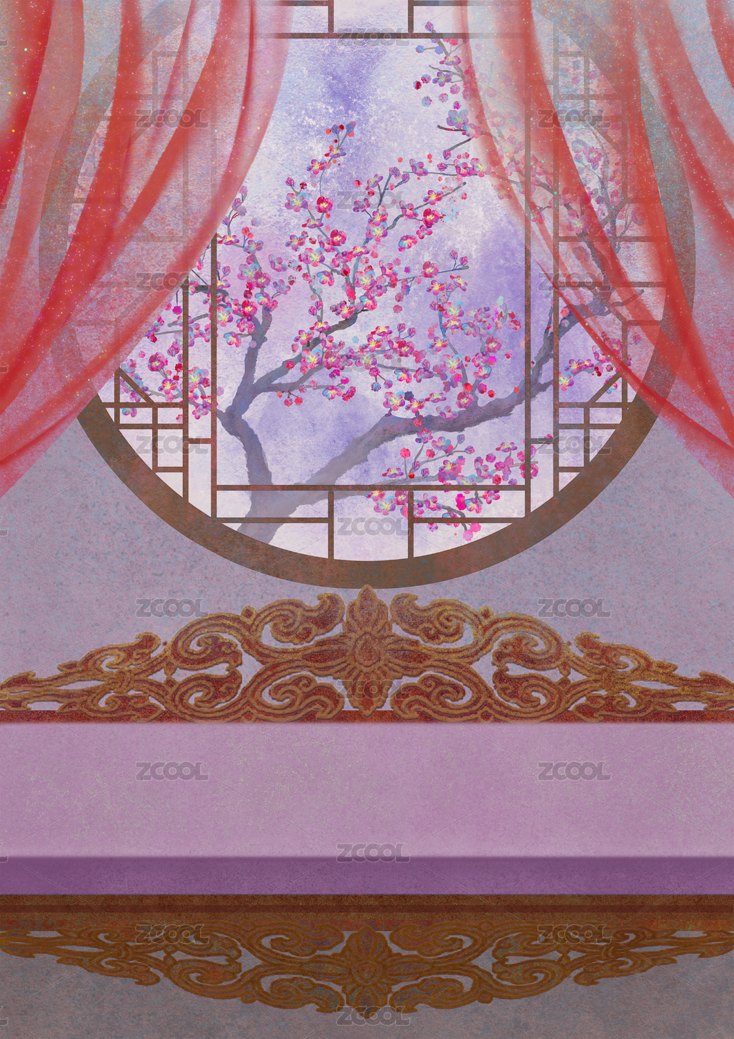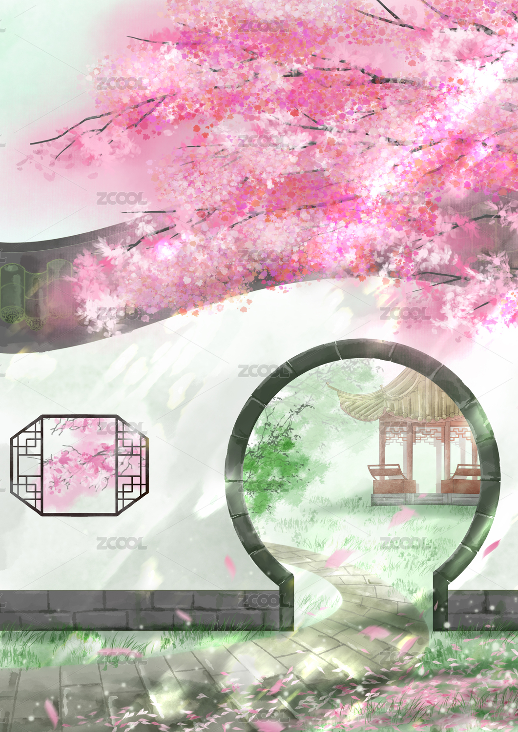 古风门窗插画背景