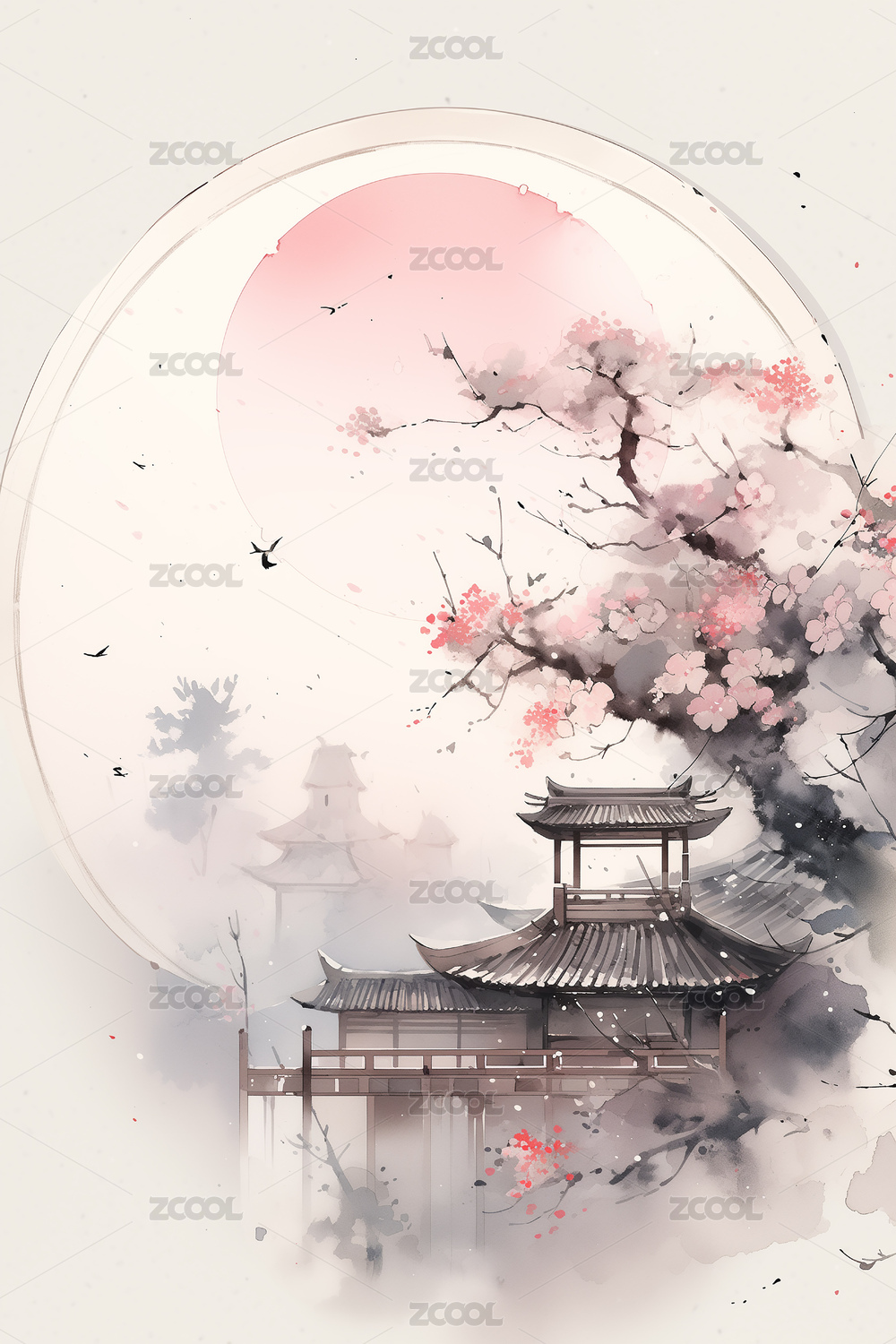 中式美学水彩插画