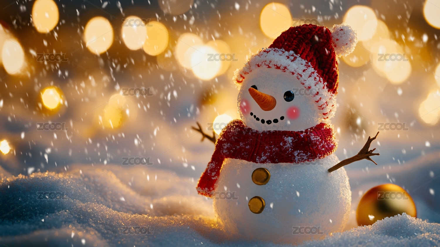 雪地里的可爱雪人与红球