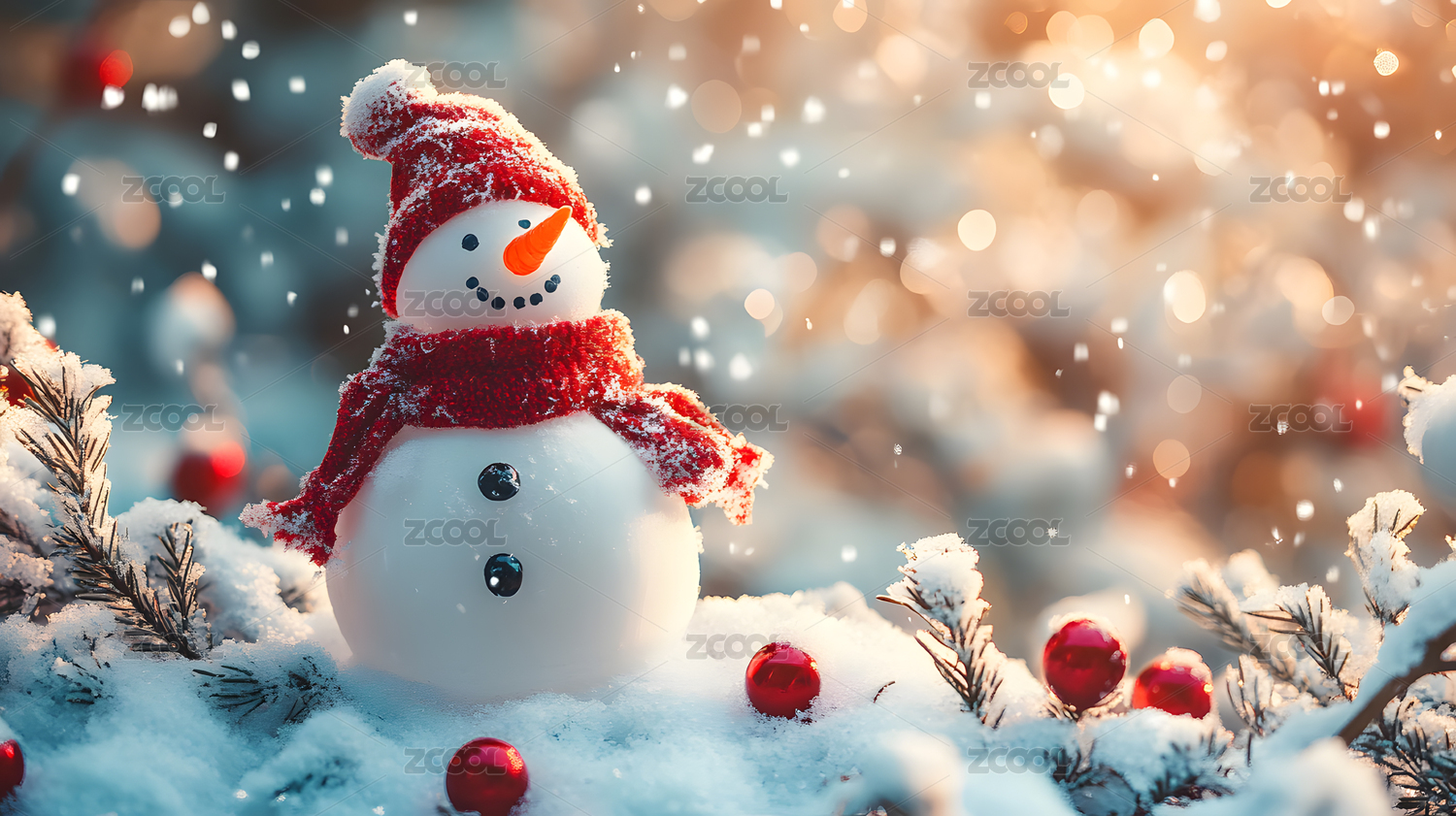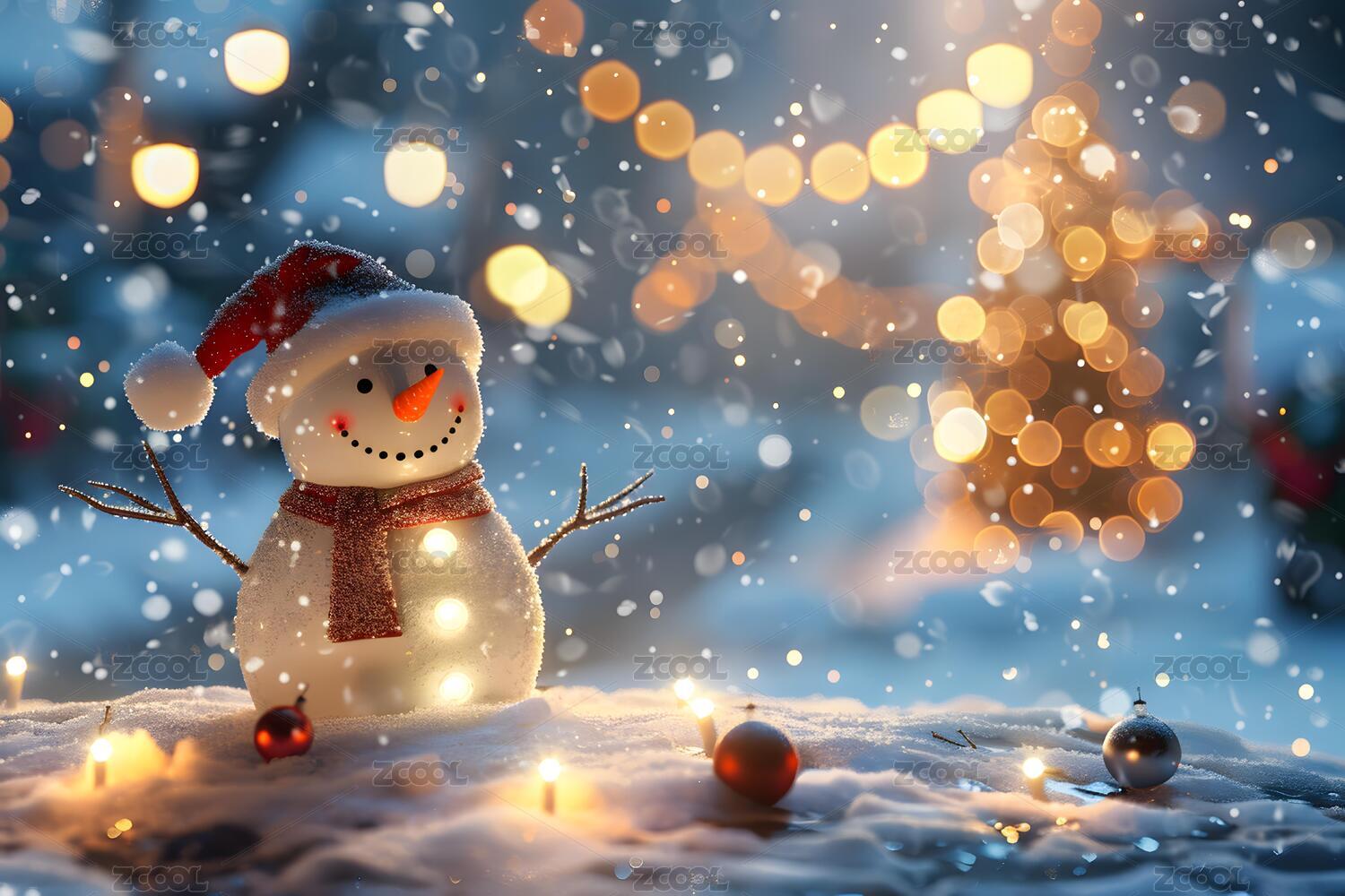 冬日雪人与圣诞装饰