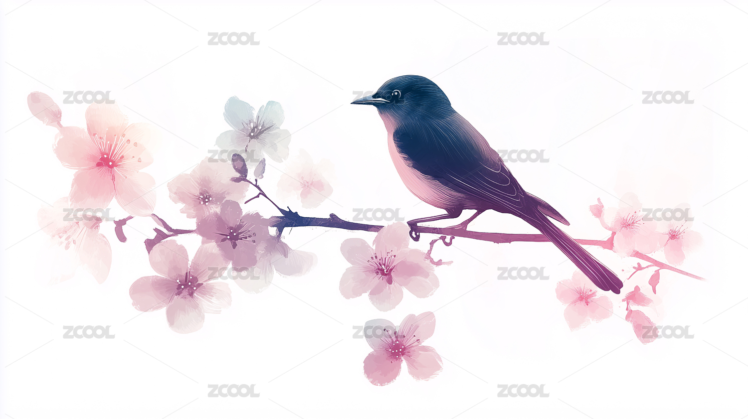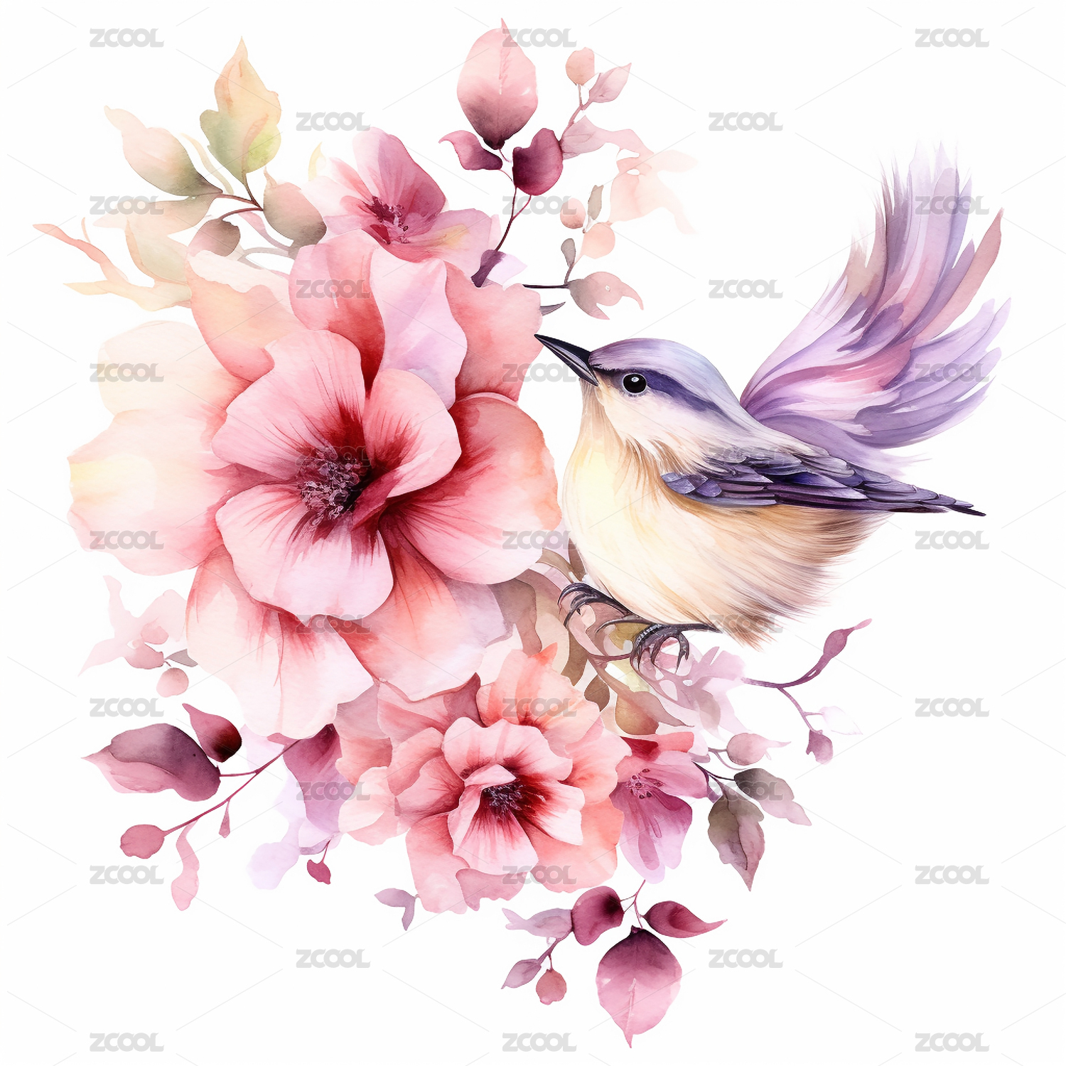 水彩,花鸟,花,鸟,树枝,手绘,传统,插画,艺术