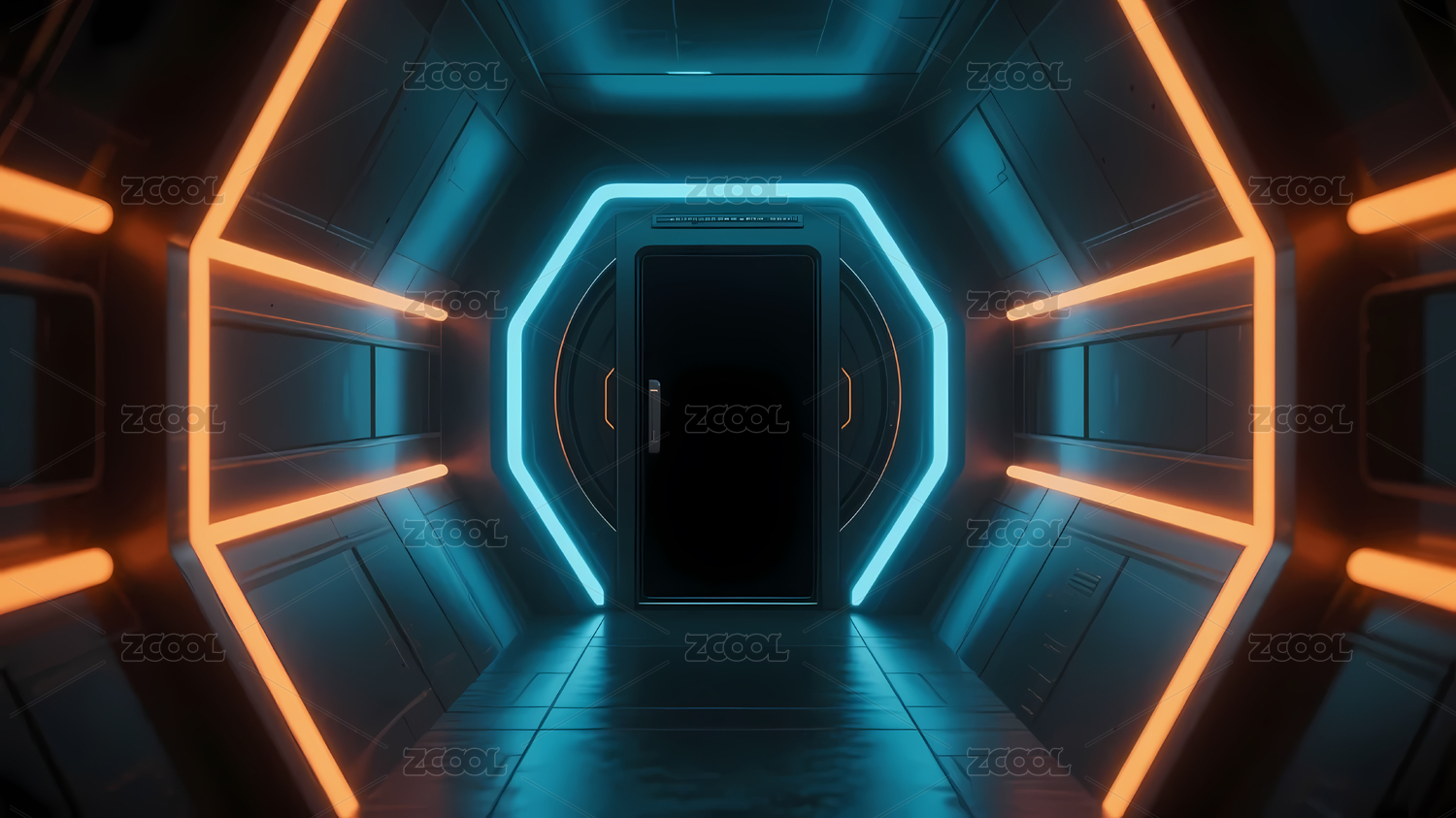 未来,科技,走廊,灯光,蓝色,空间,通道,未来感,科幻,光线