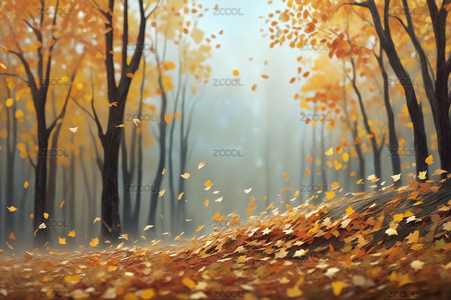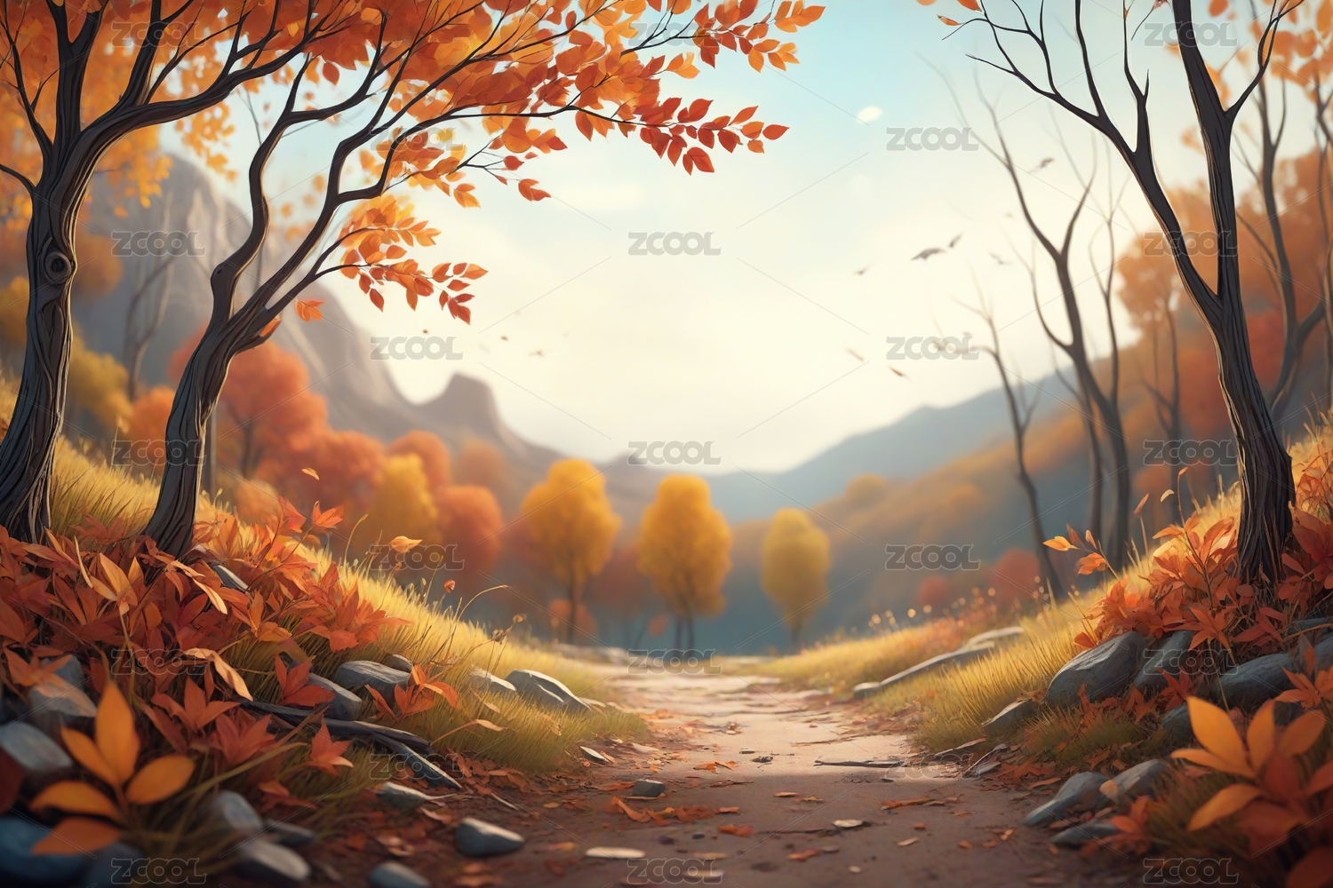 秋日,森林,小径,树木,山峦,远景,黄叶,红叶,落叶,道路