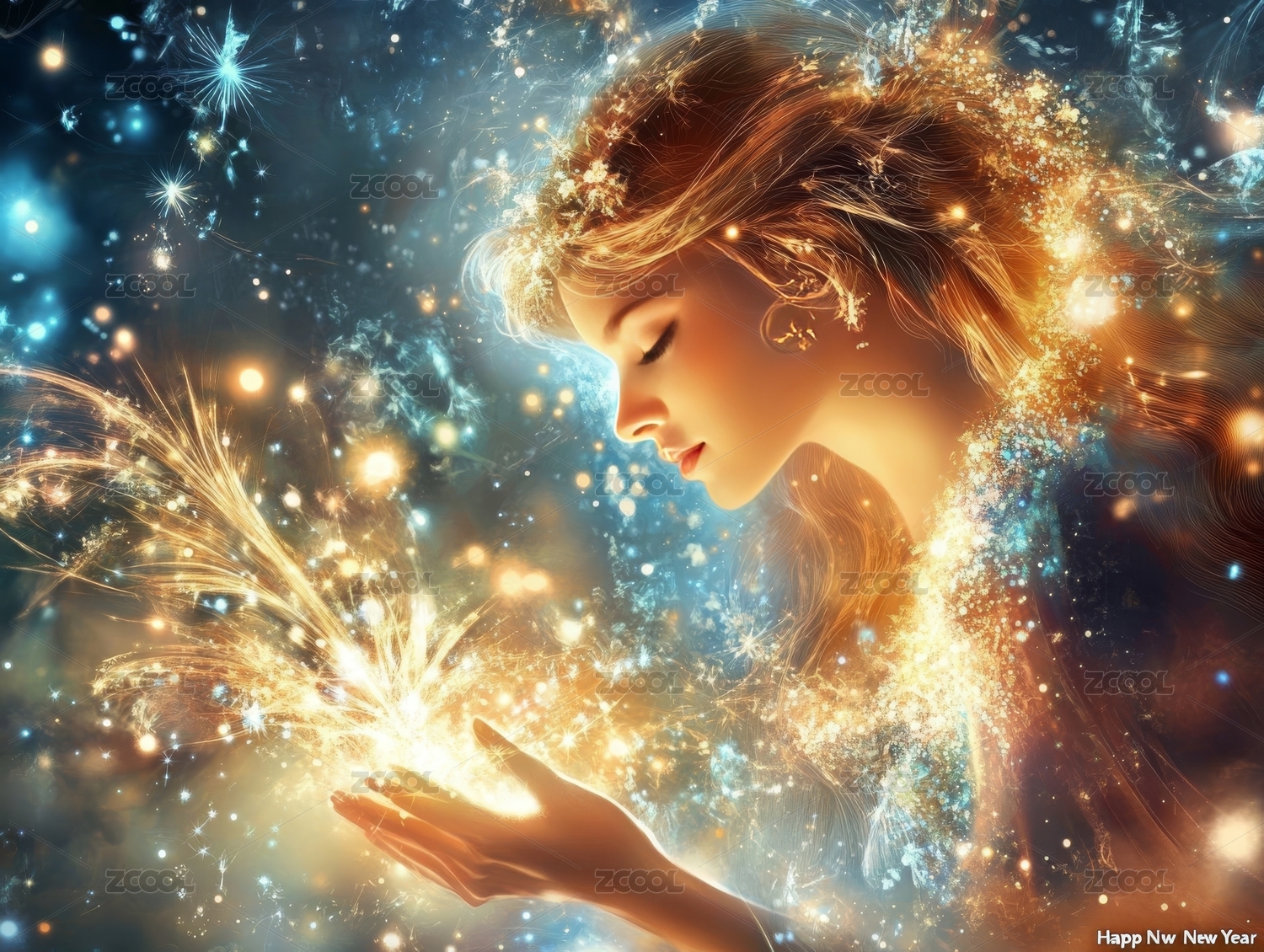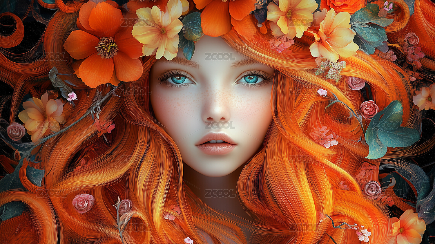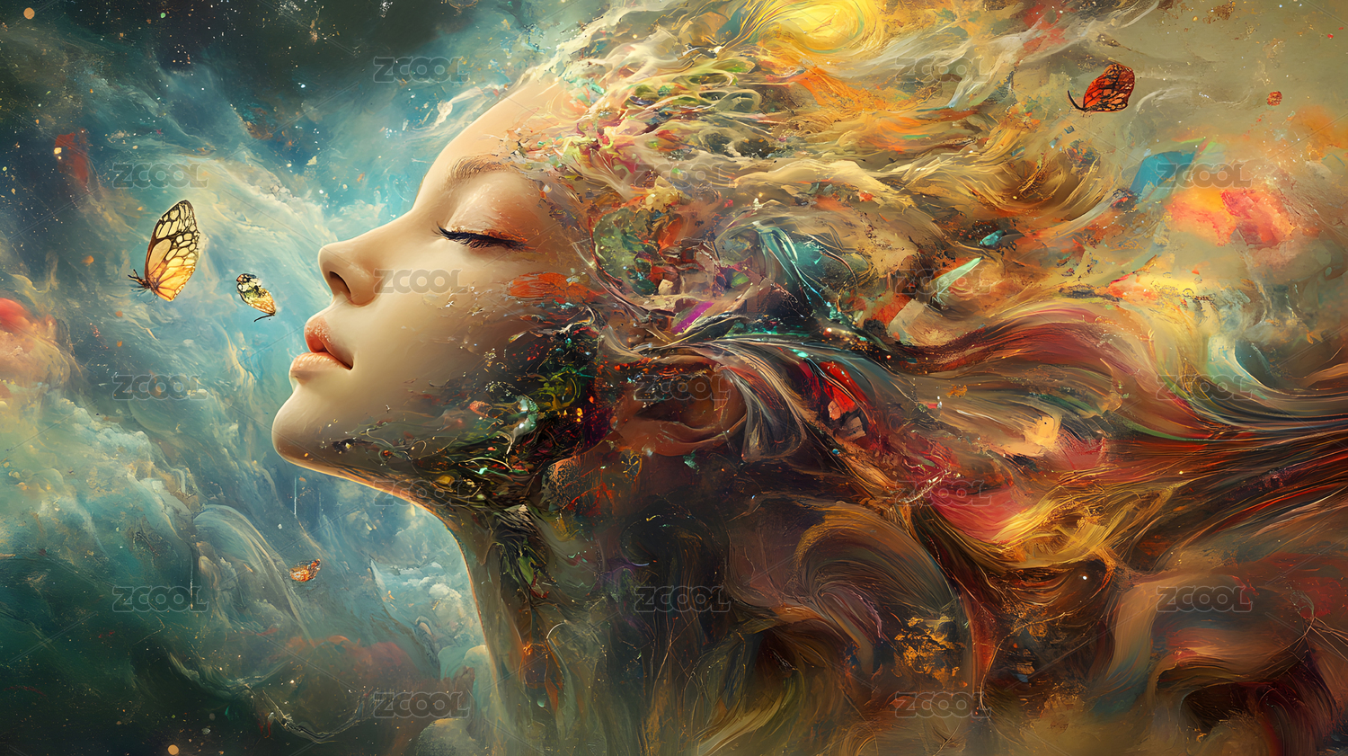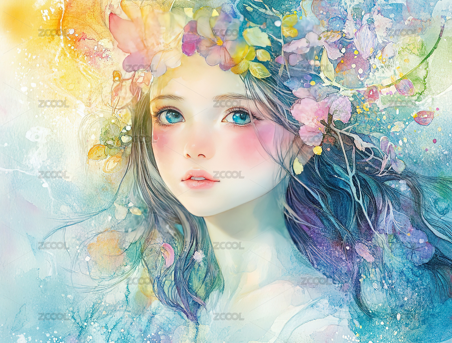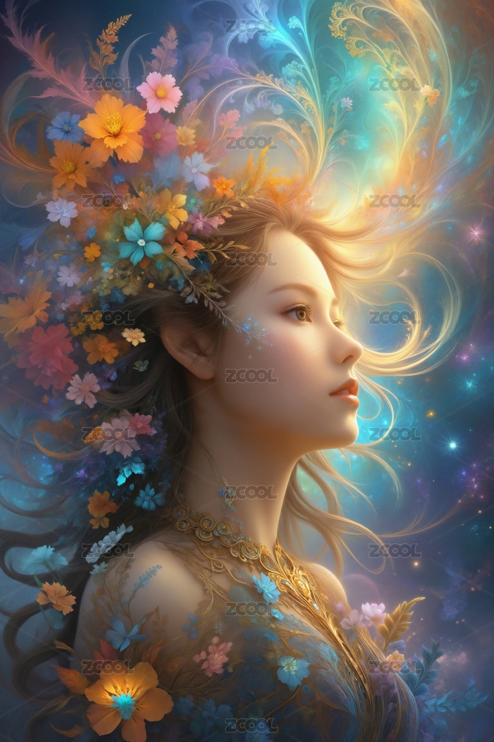 梦幻,花卉,花环,艺术,色彩,绚丽,美丽,人物,背景,星空