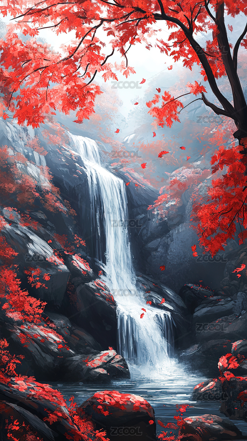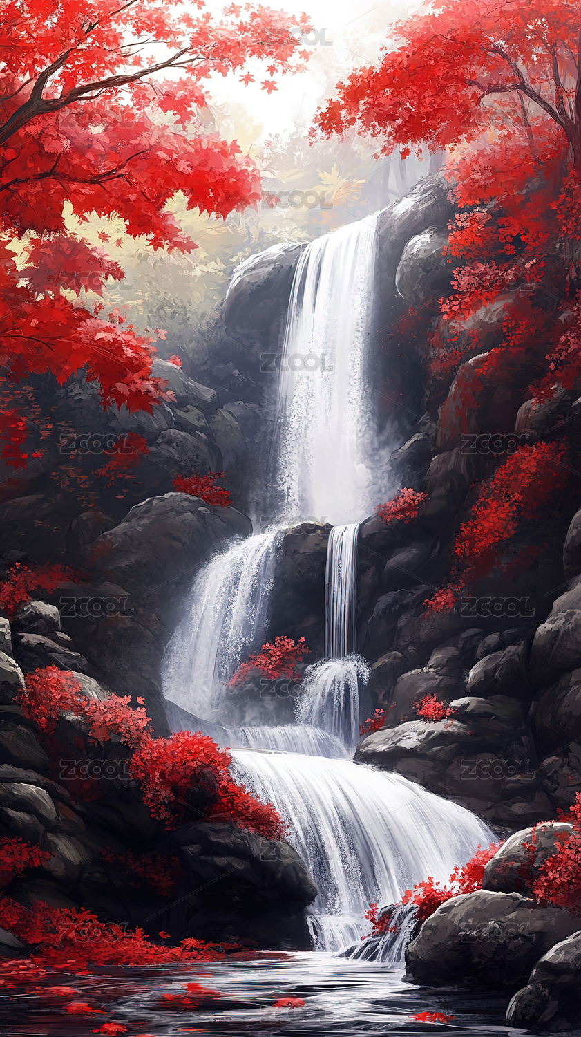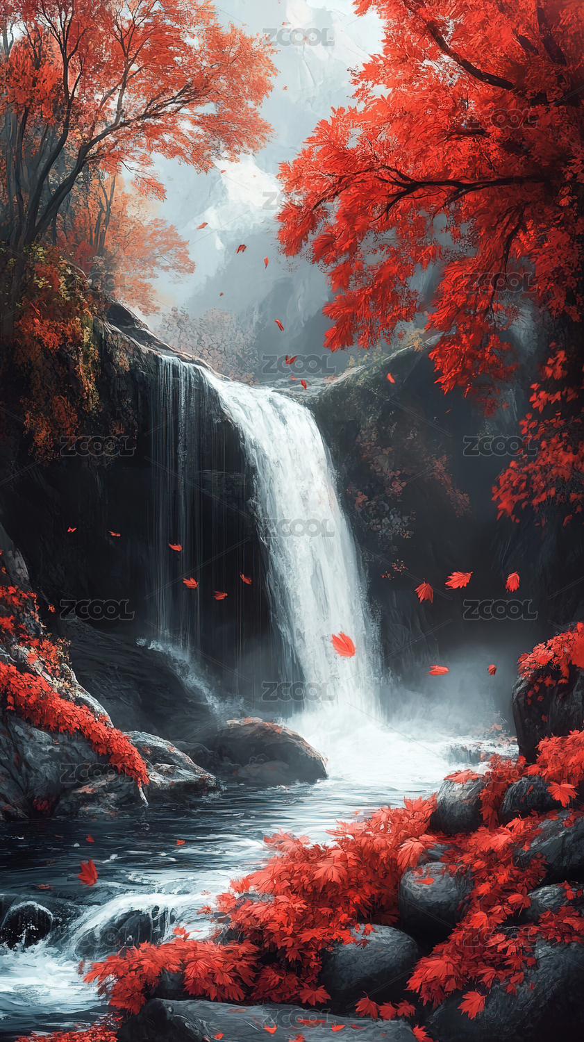 自然, 飘落, 宁静, 水面, 风景, 树叶, 红色,瀑布, 红叶, 落叶