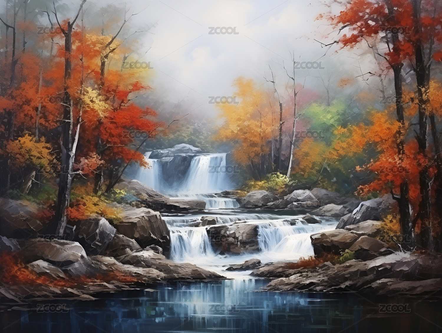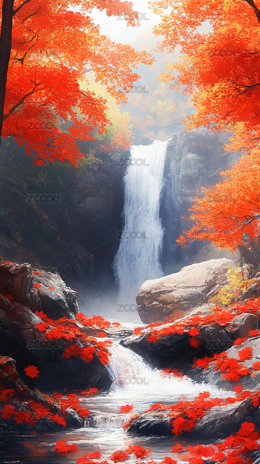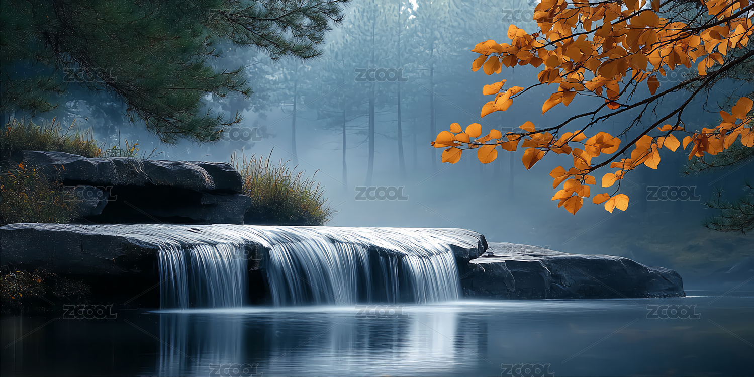 自然, 飘落, 宁静, 水面, 风景, 树叶, 红色,瀑布, 红叶, 落叶