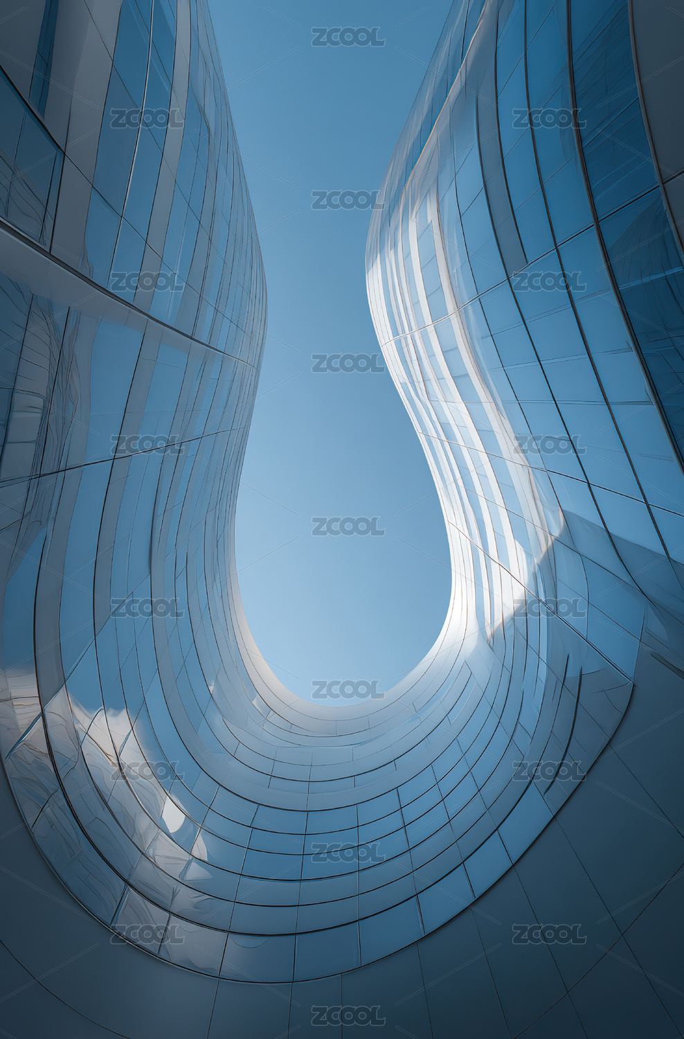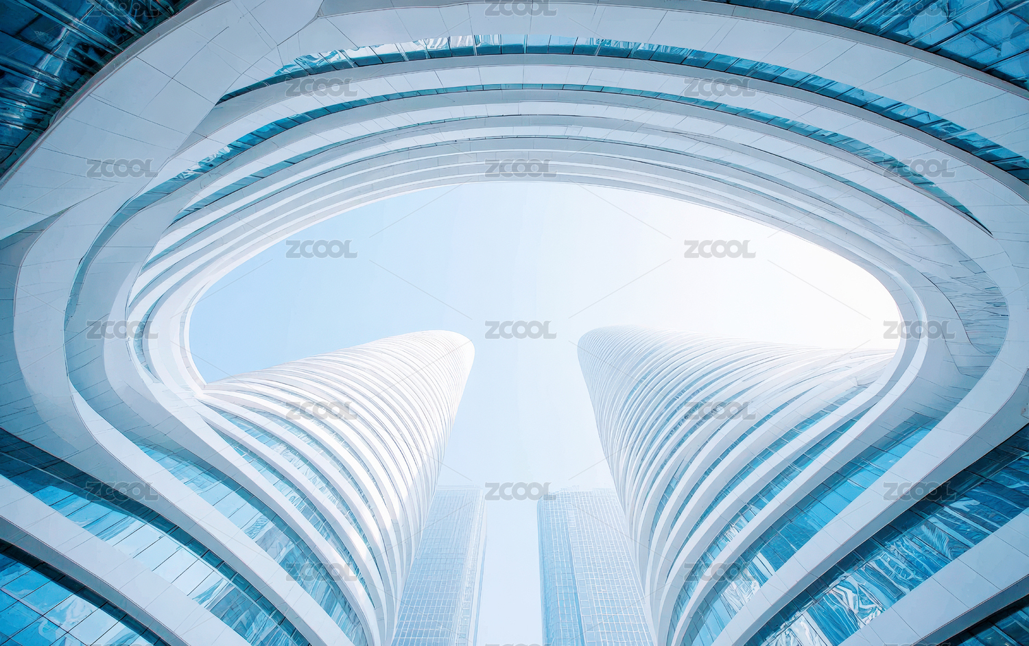 正下方是现代建筑在晴朗的蓝天下拍摄的照片