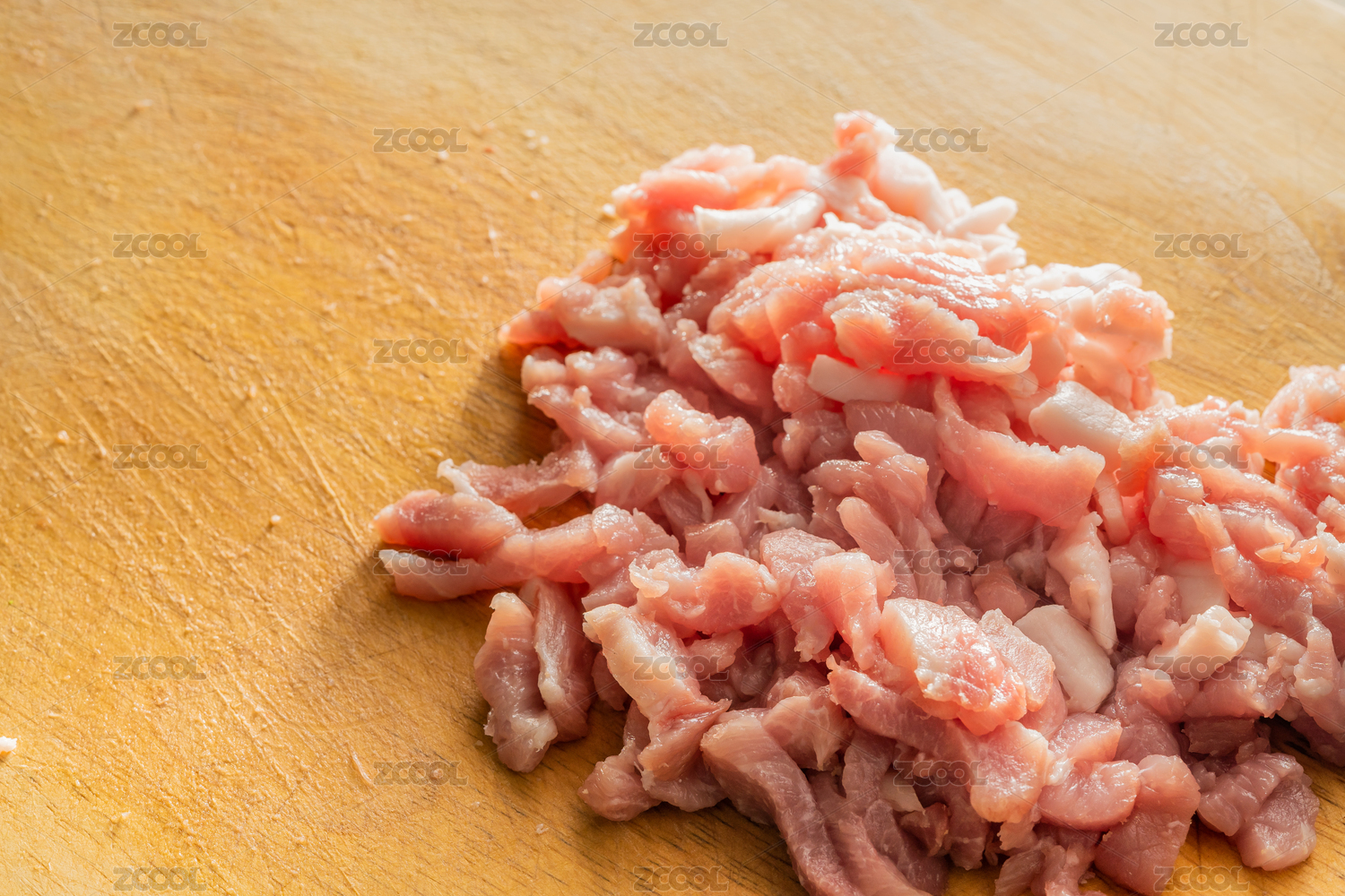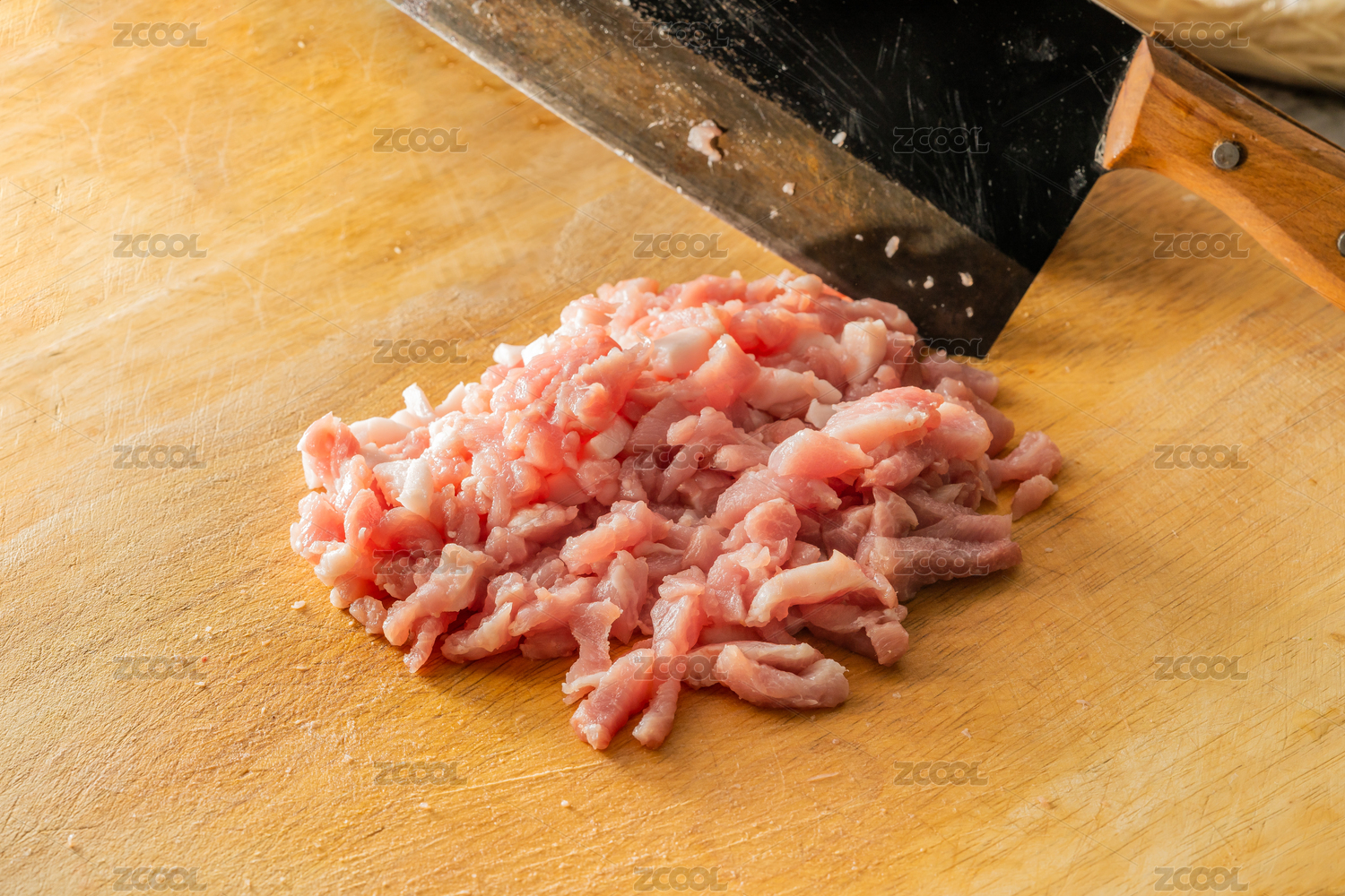 在砧板切猪瘦肉