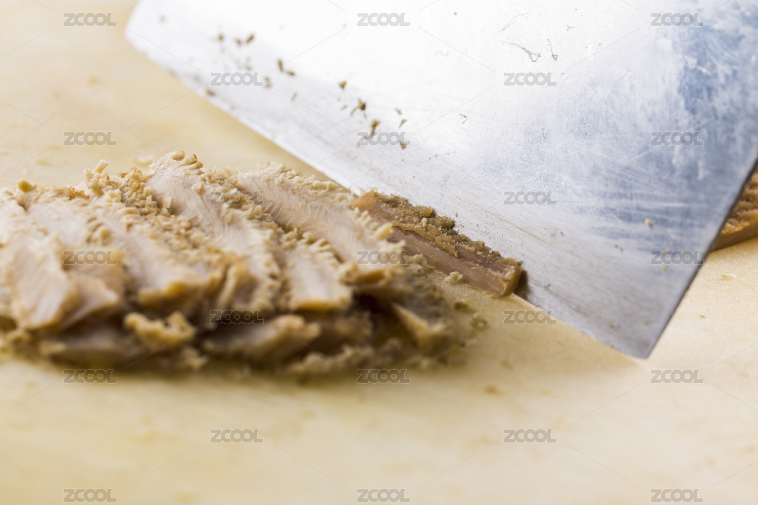 用中式菜刀把卤猪耳分割成薄片