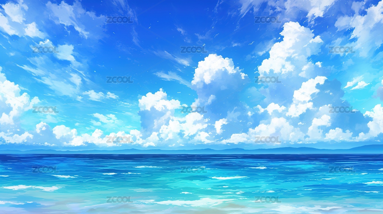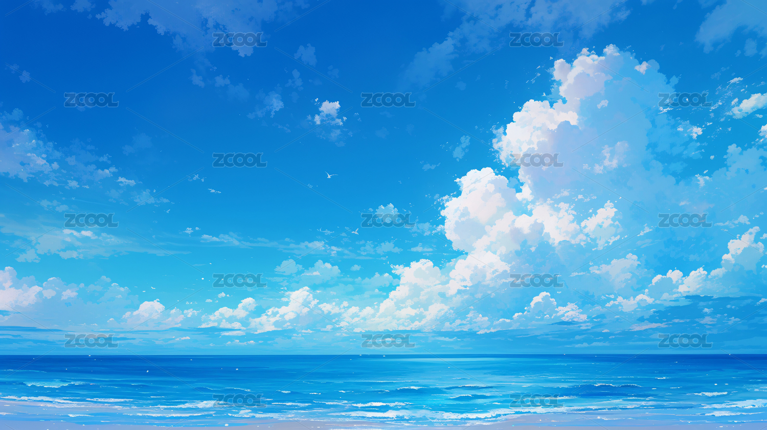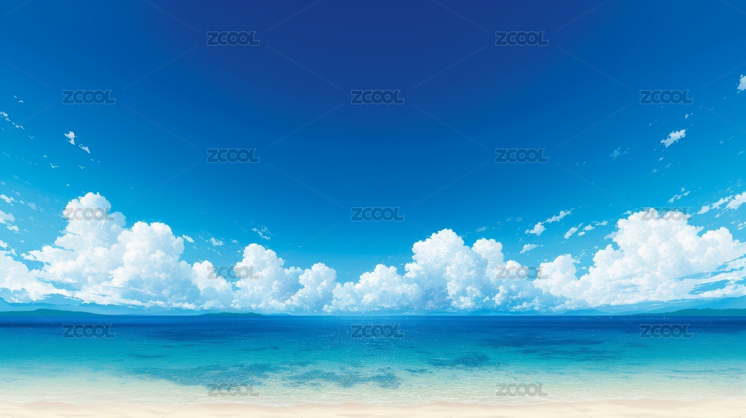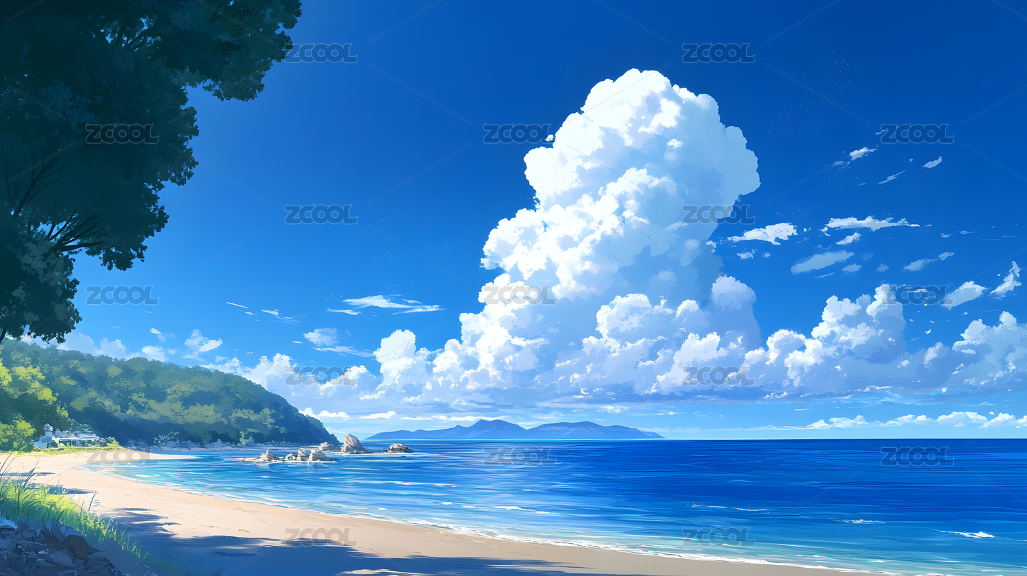 夏日海滩海浪插画,大暑节气海边度假概念插