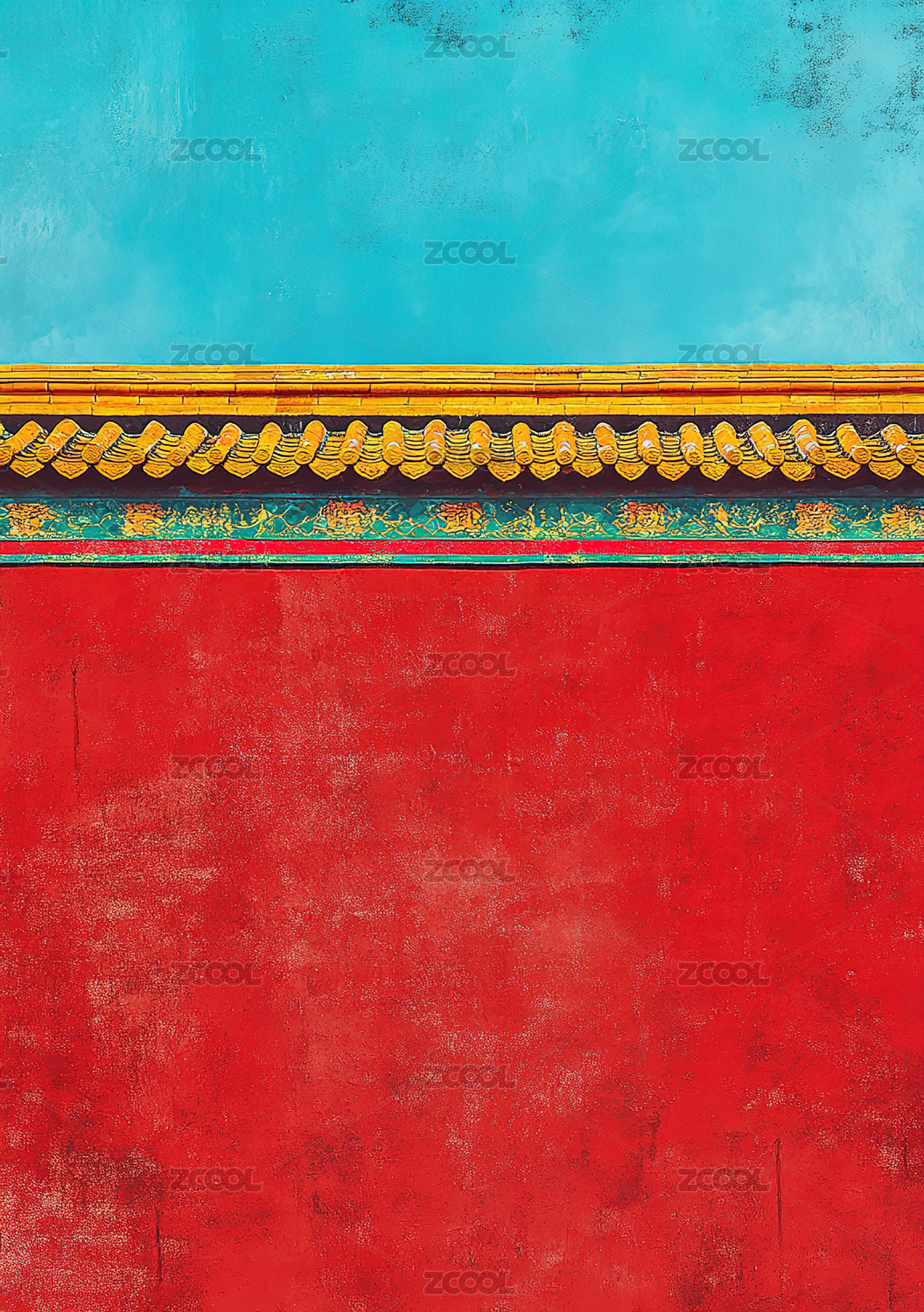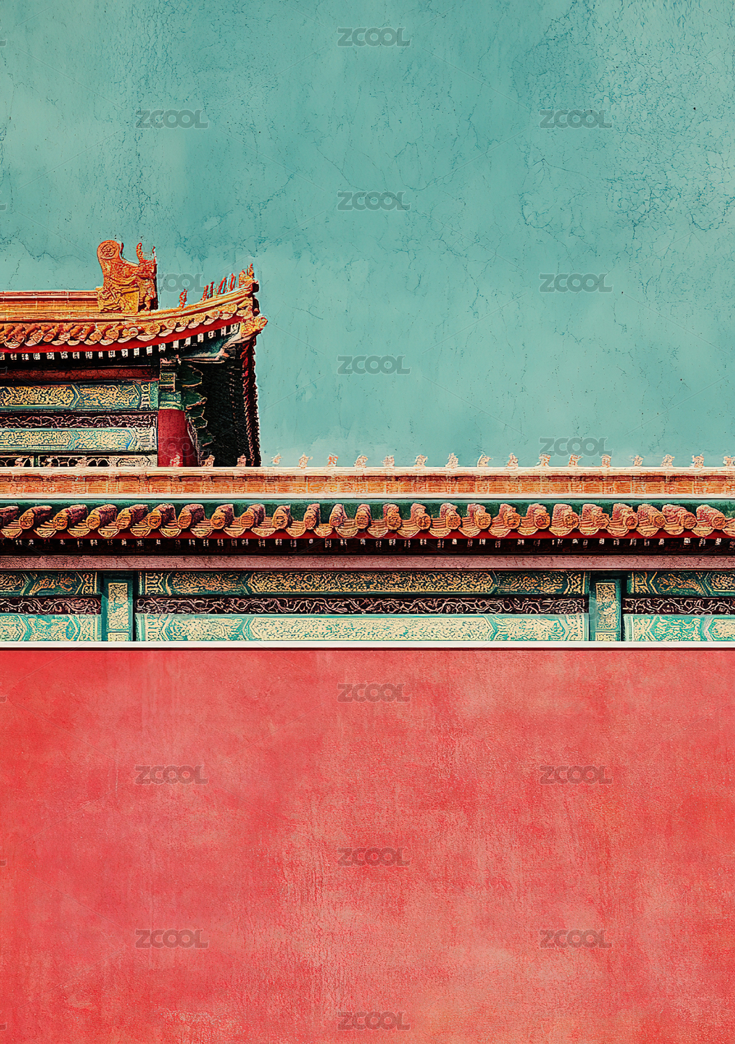 中国古建筑围墙,红墙绿瓦墙壁背景
