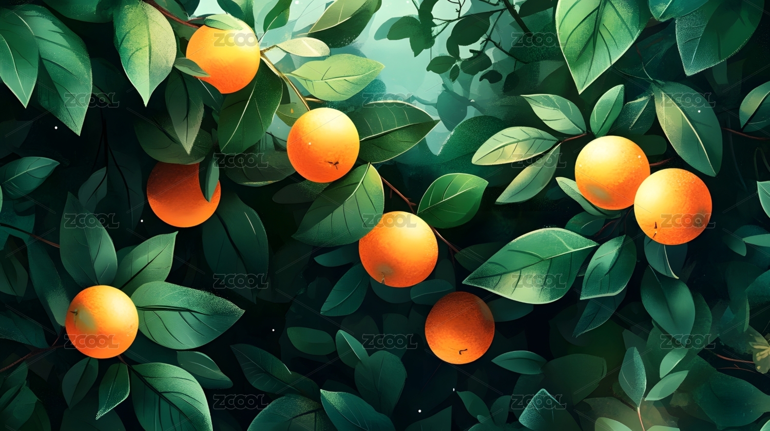 树枝上结着红色的果实,唯美的秋季节气插画。