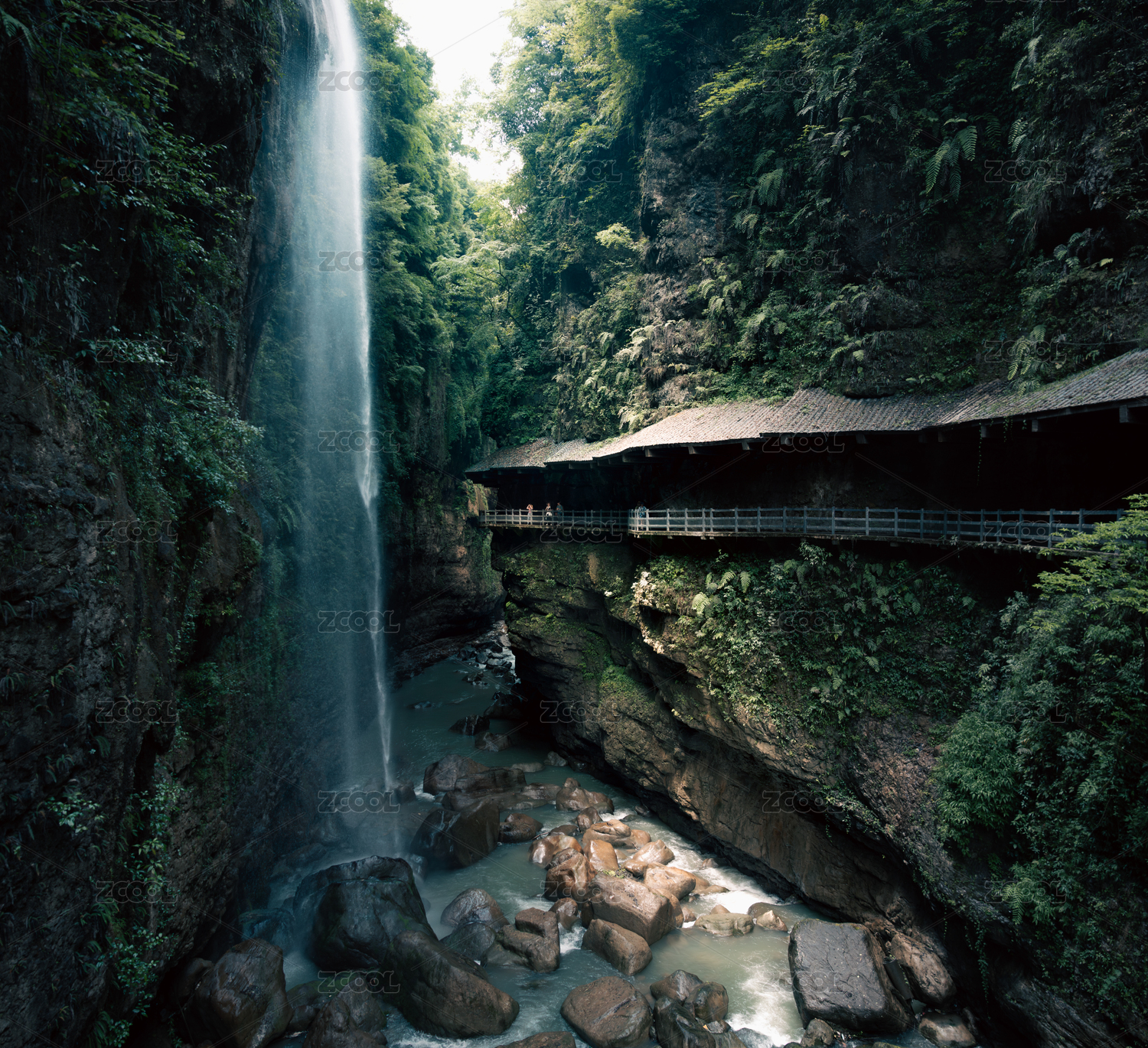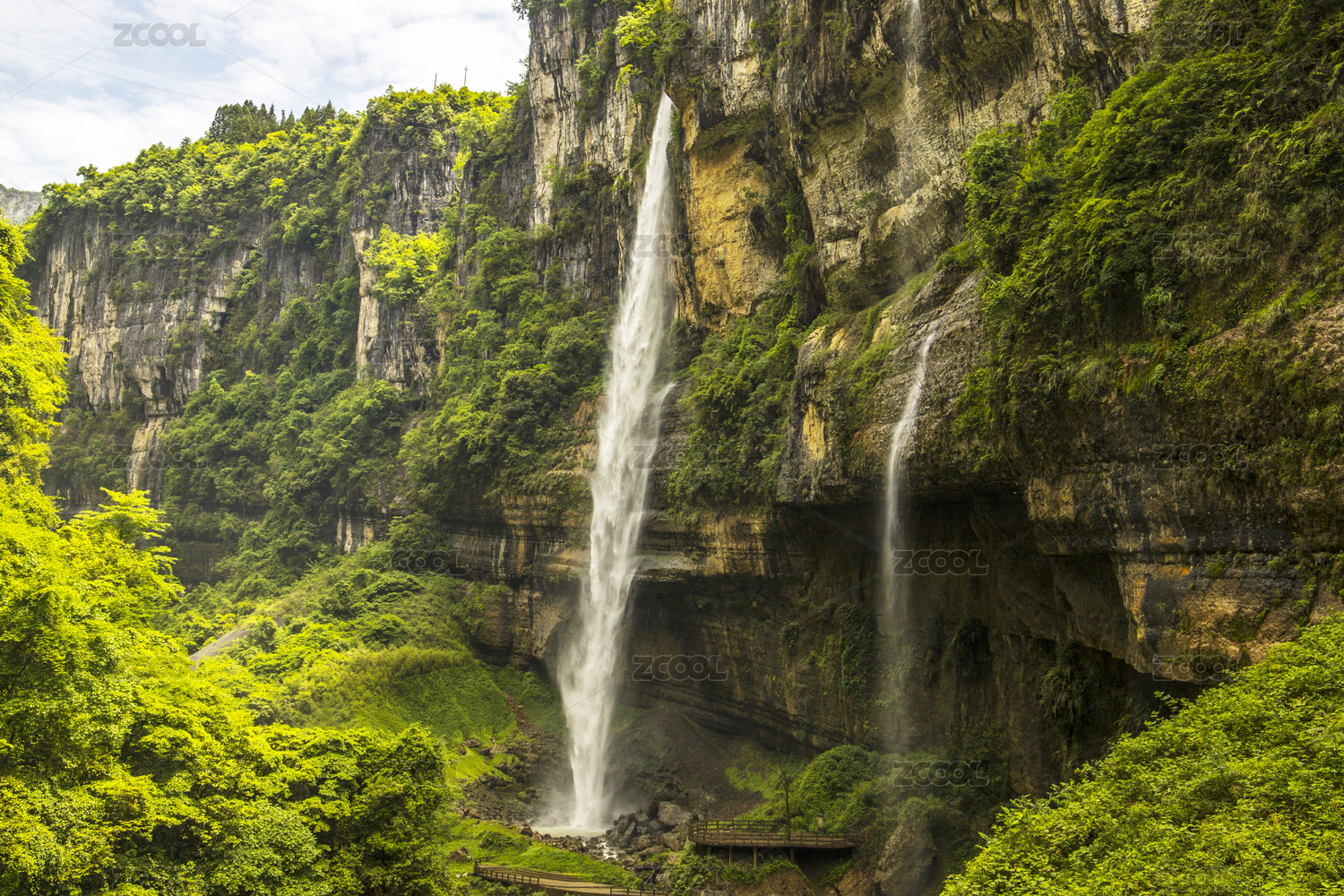 湖北恩施大峡谷云龙地缝绝壁中的飞瀑