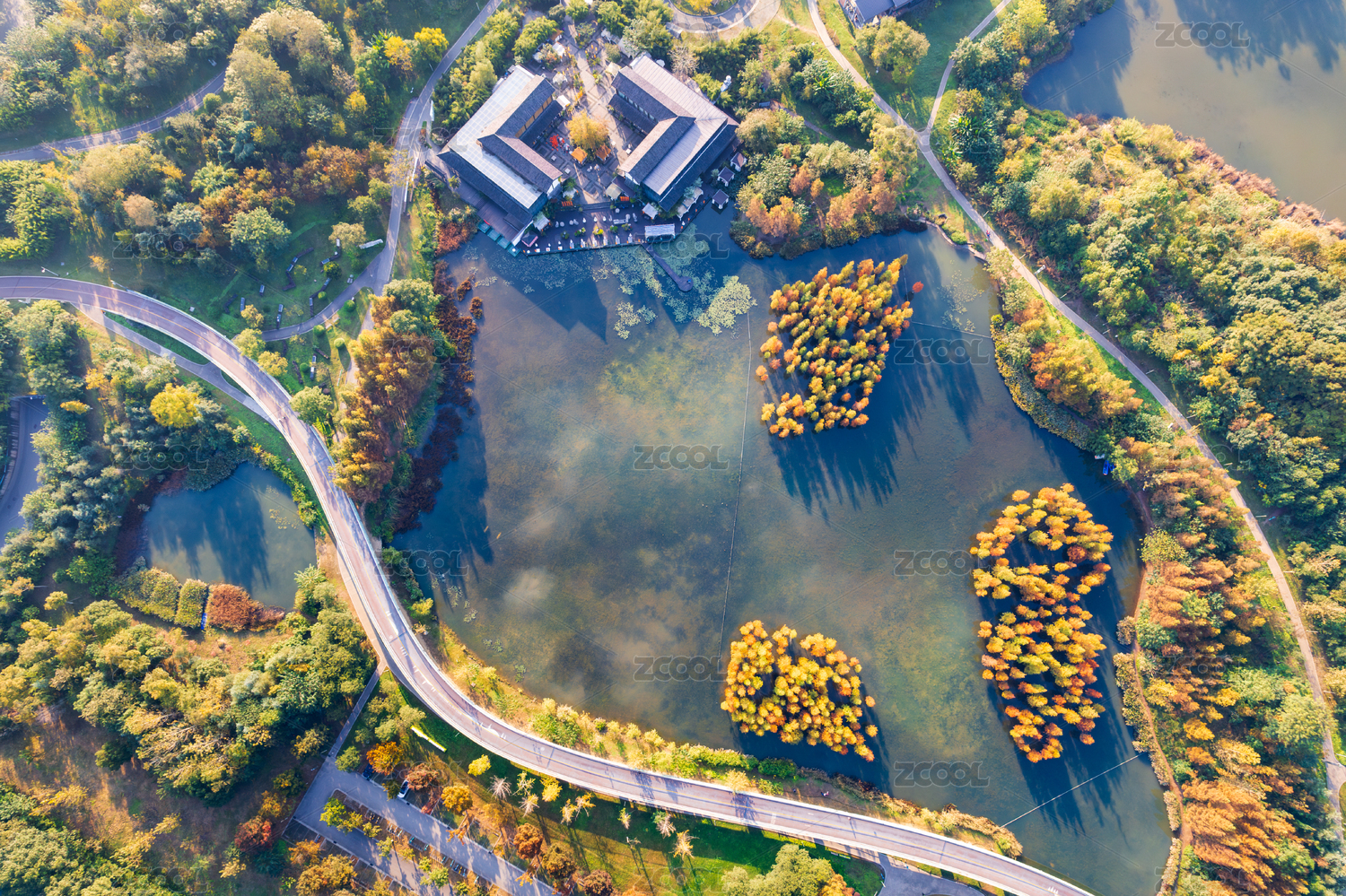 成都白鹭湾湿地公园秋季冬季水杉红叶航拍