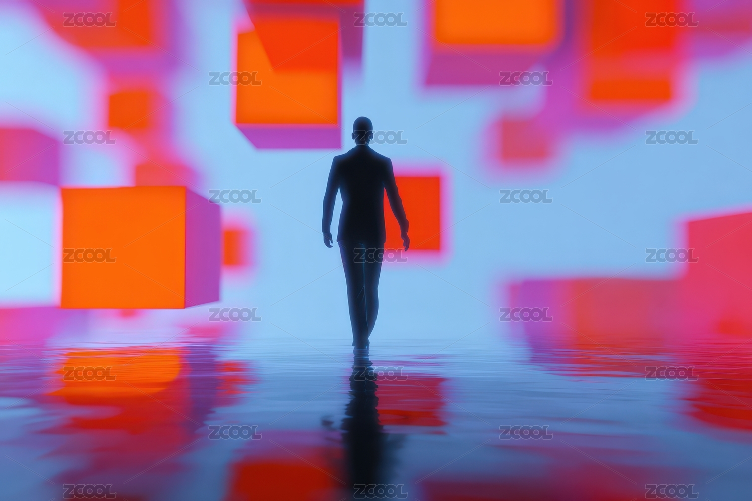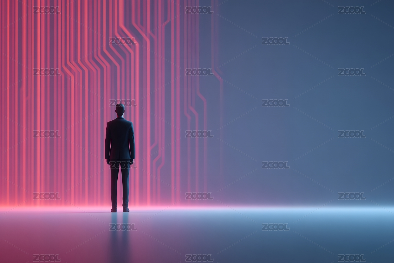 穿着西装的商务男士焦虑的站在蓝色的背景中