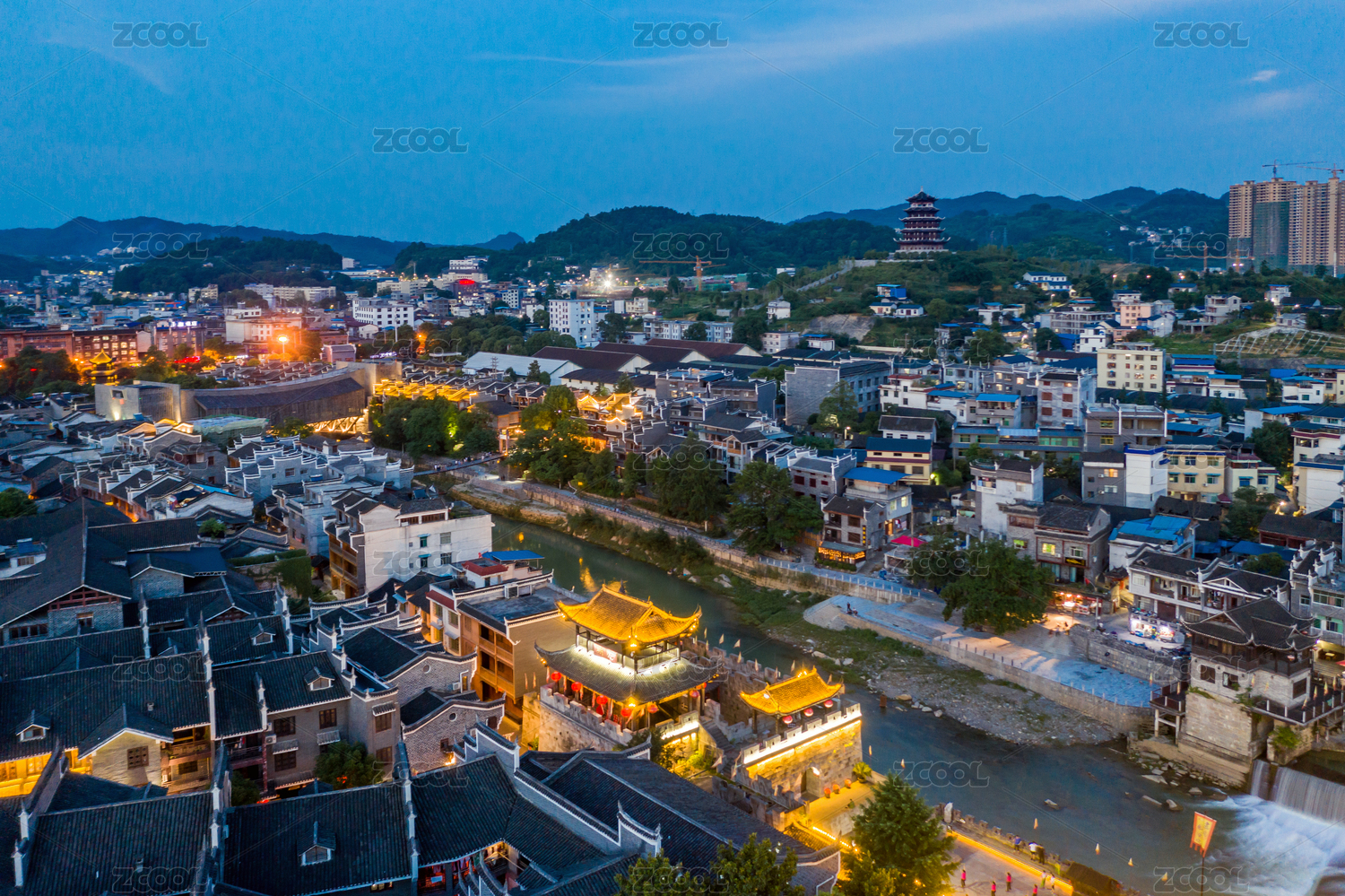 中国湖南省湘西州凤凰县凤凰古城航拍
