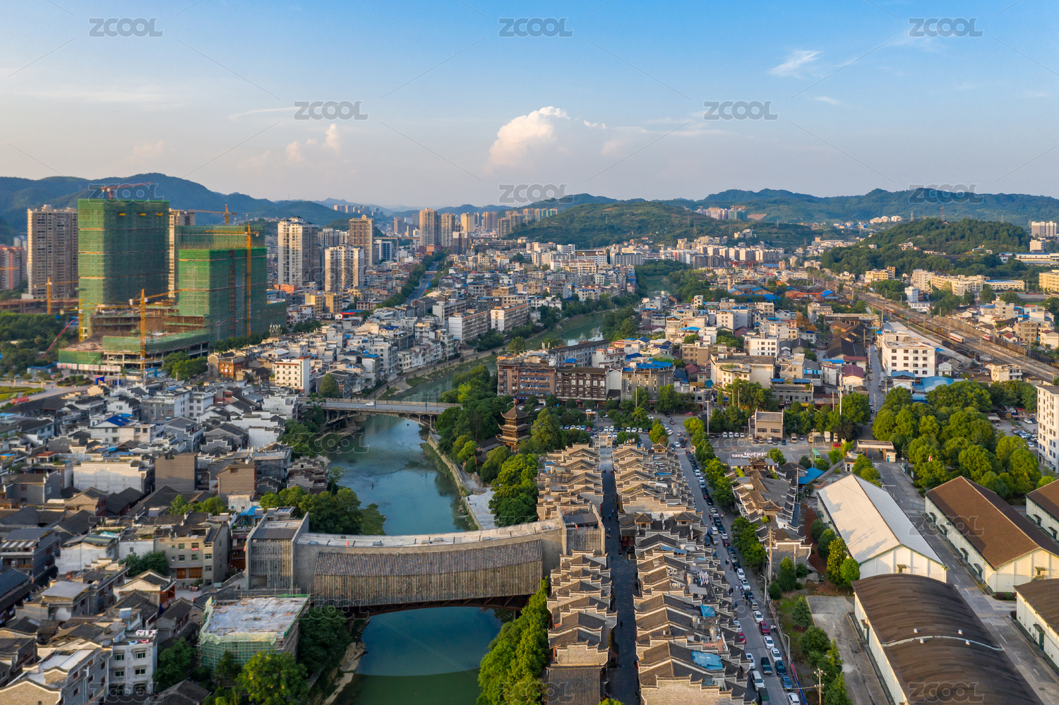 航拍湖南湘西龙山县里耶古城及里耶秦简出土