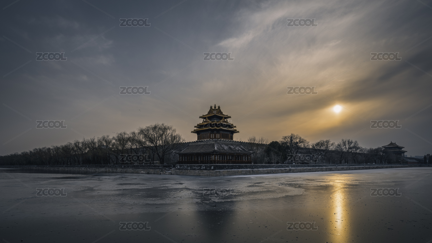 冬天,冬至,元旦,寒假,冬季,结冰,冰河,冰面,角楼,故宫