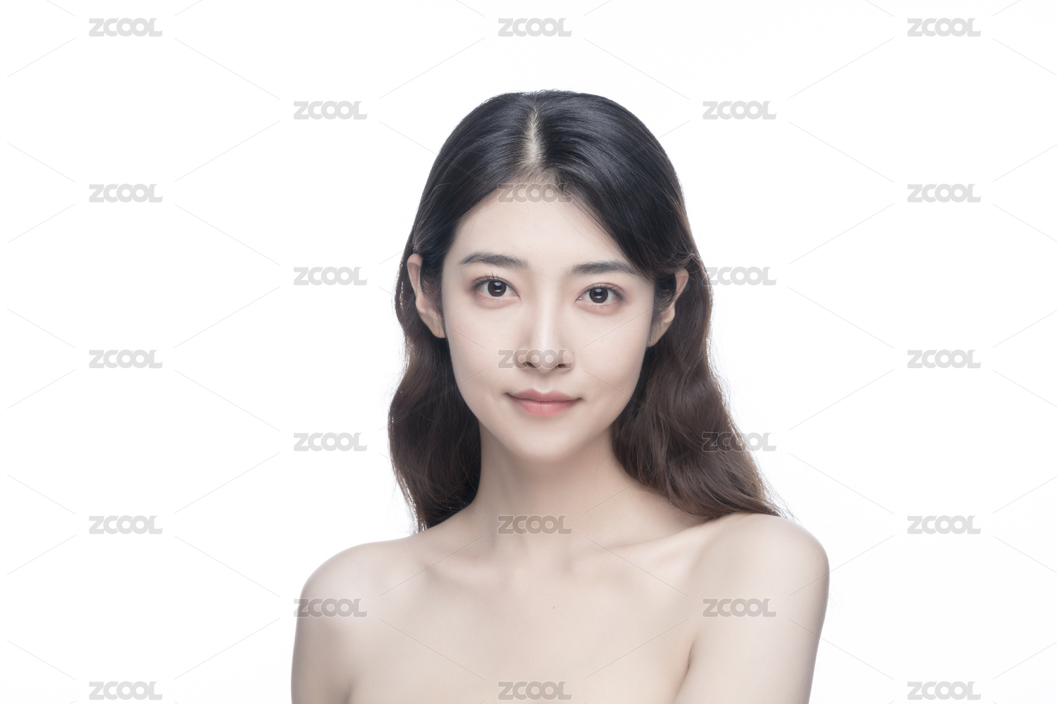年轻东方女性美容护肤人像
