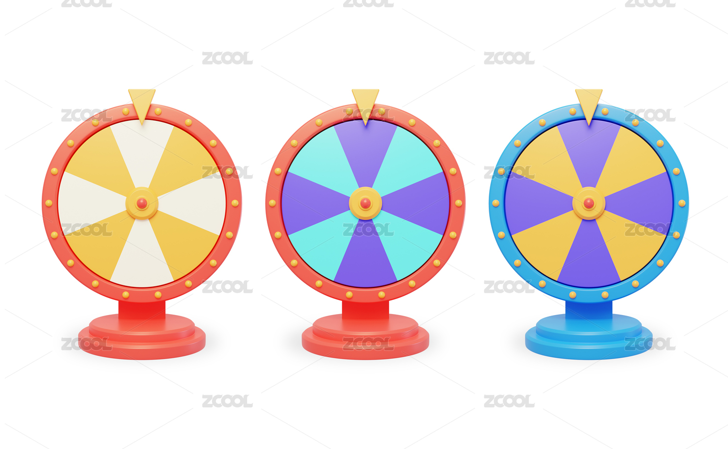 3D金融理财电商抽奖幸运大转盘矢量插画