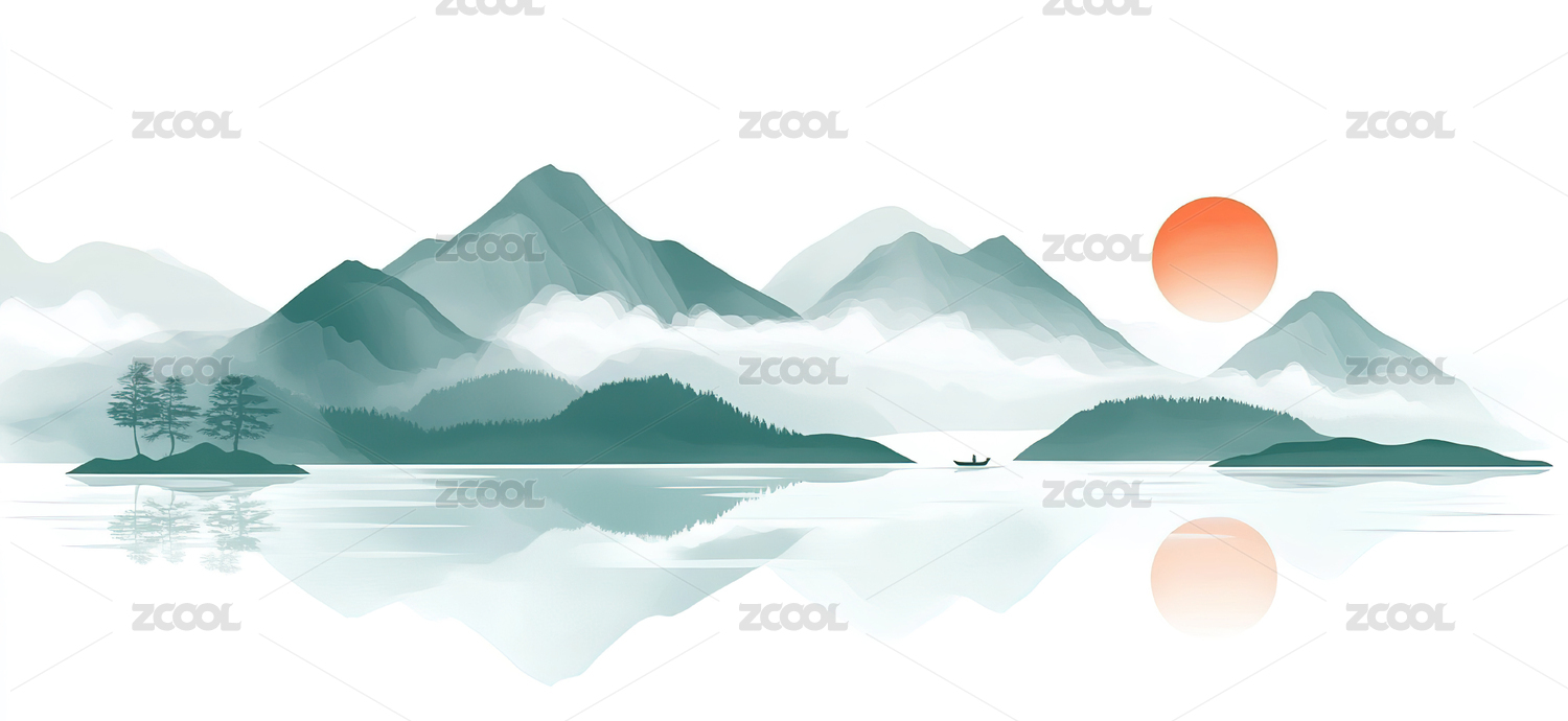 地形,中国文化,中国画,高山,插画,淡雅,背景,写意画,自然,风景