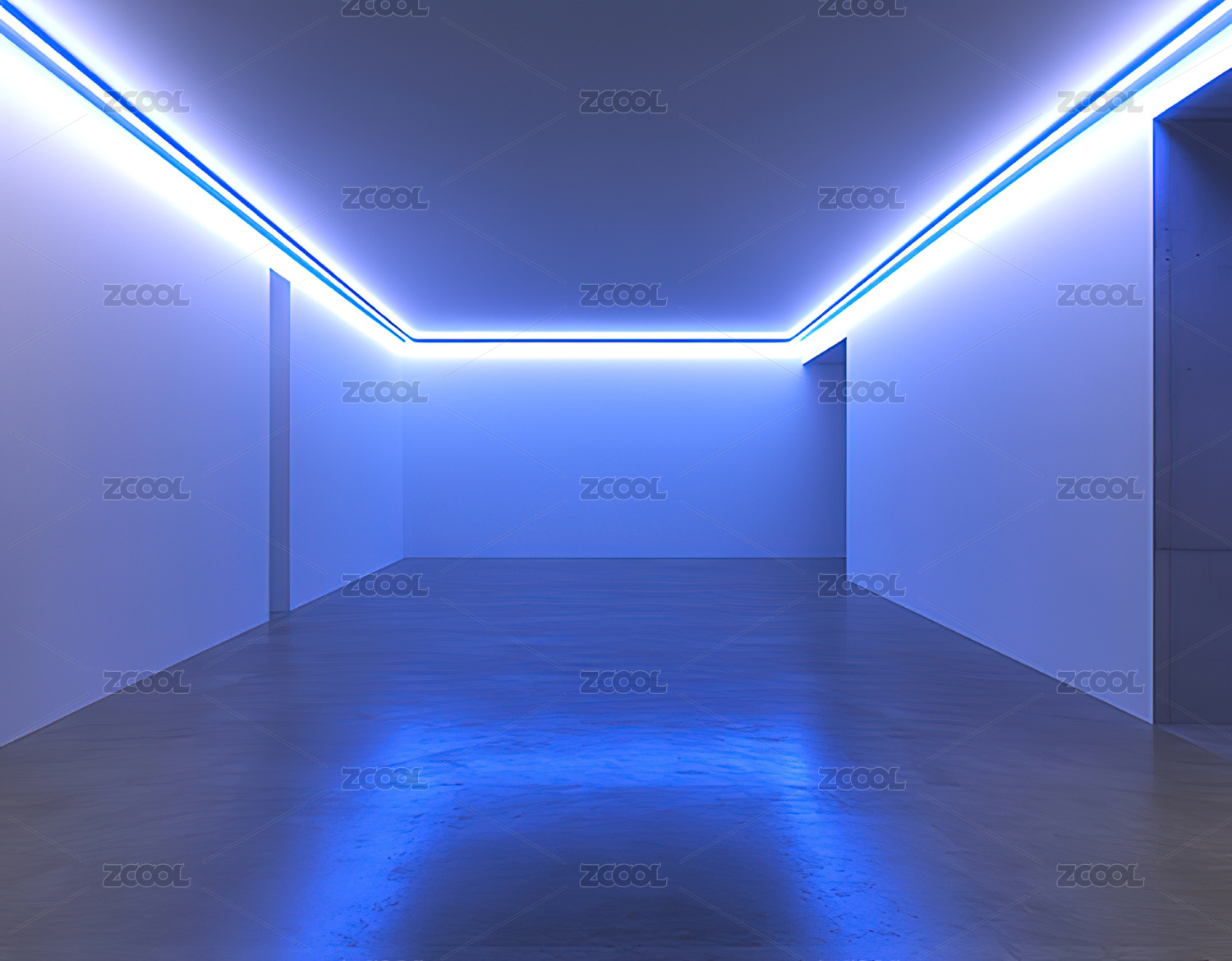 蓝色灯光下的空间