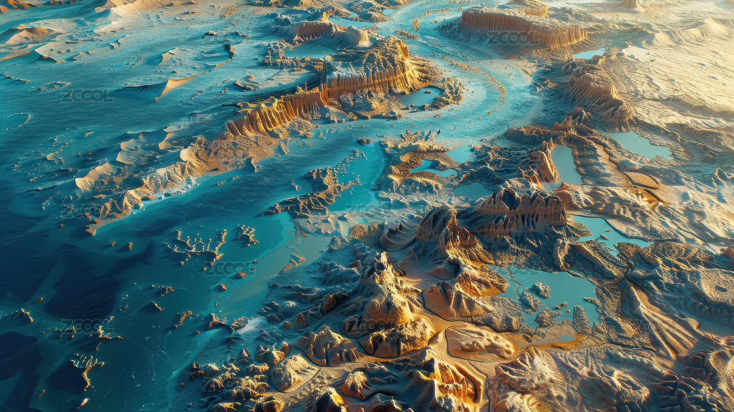 3D渲染山丘山脉高山大山山峰数字艺术插画