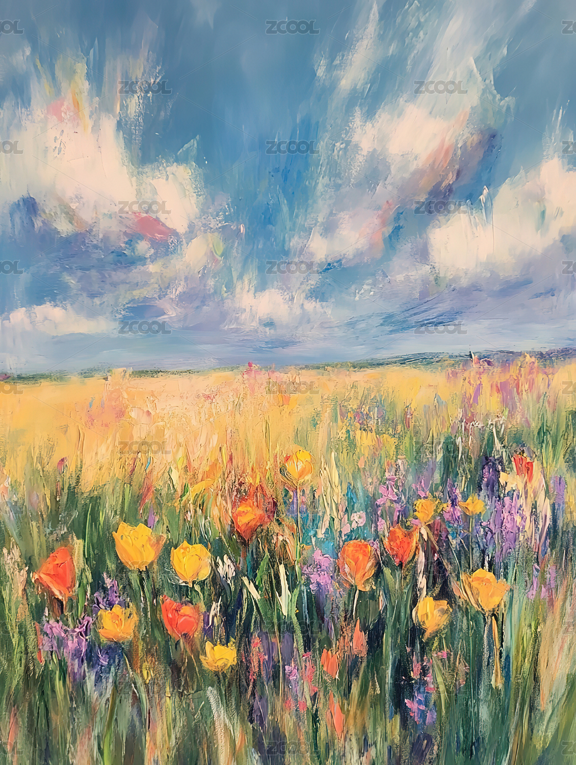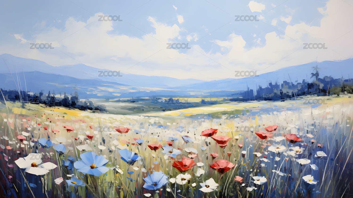 艺术,厚涂,印象派,花朵,花田,海岸,风景,油画,抽象,蓝色