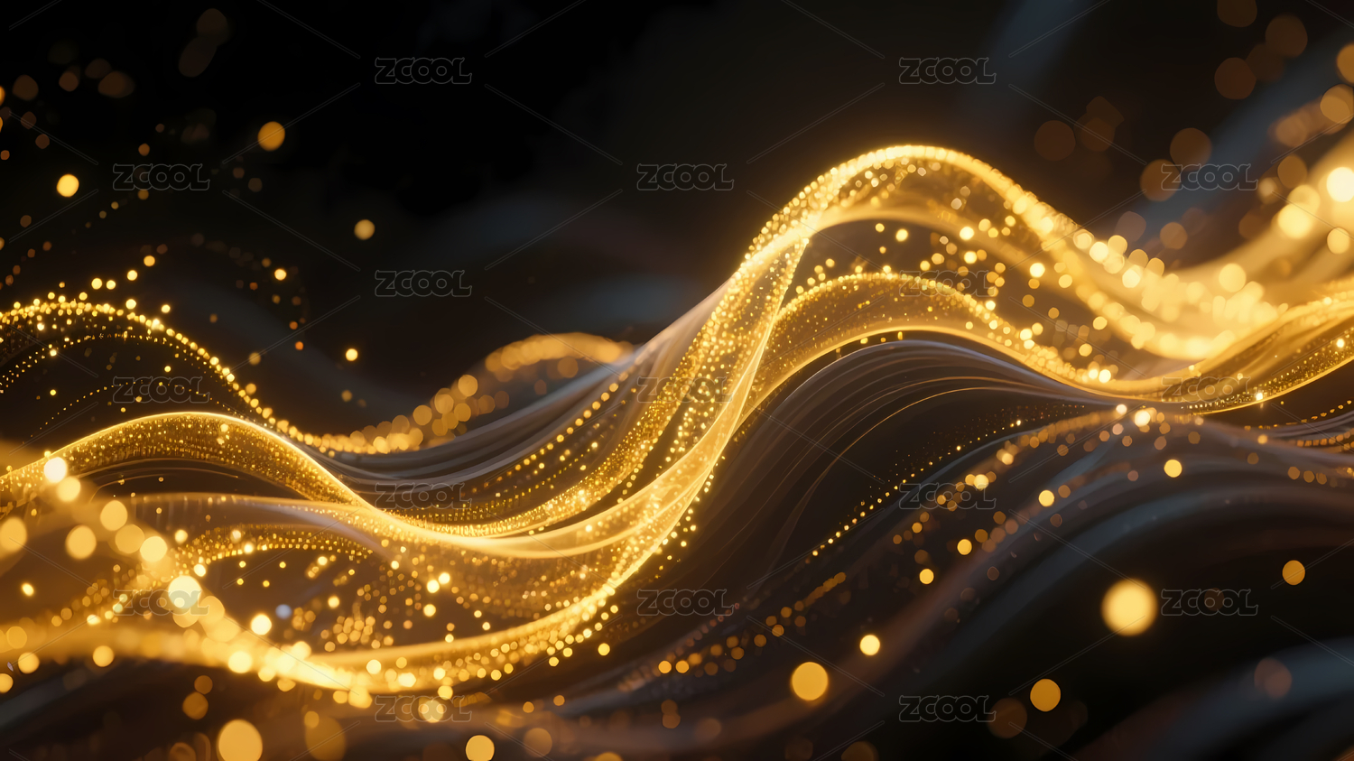 金色光点波浪曲线背景