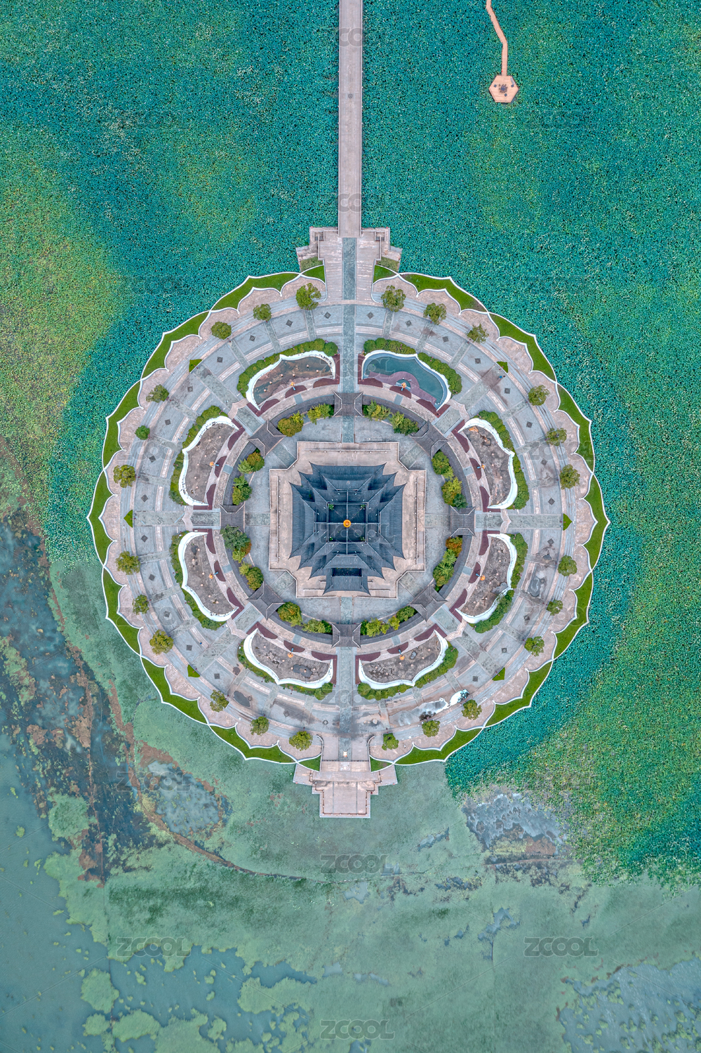 航拍河南郑州象湖生态湿地公园及贾鲁河水系