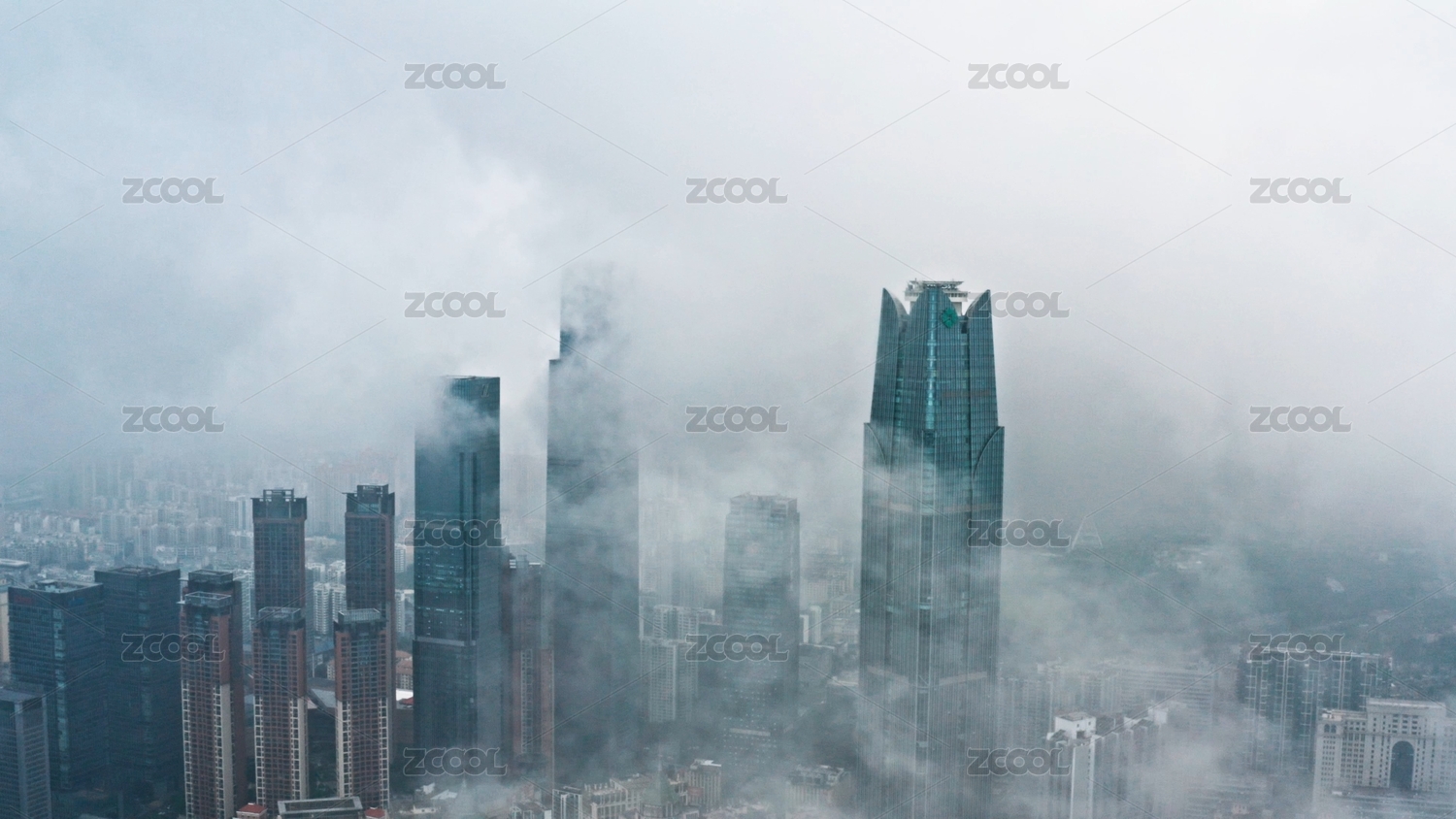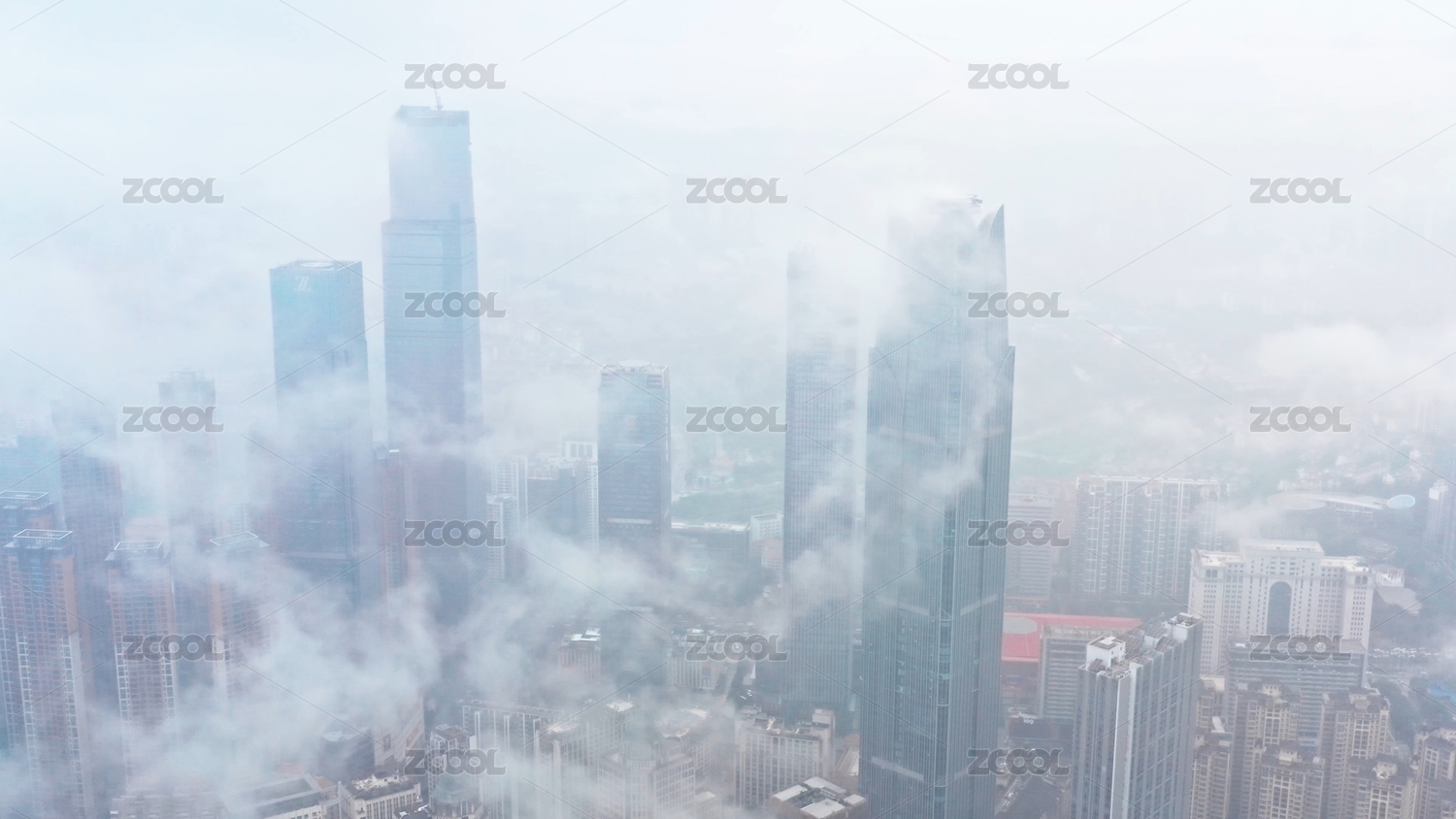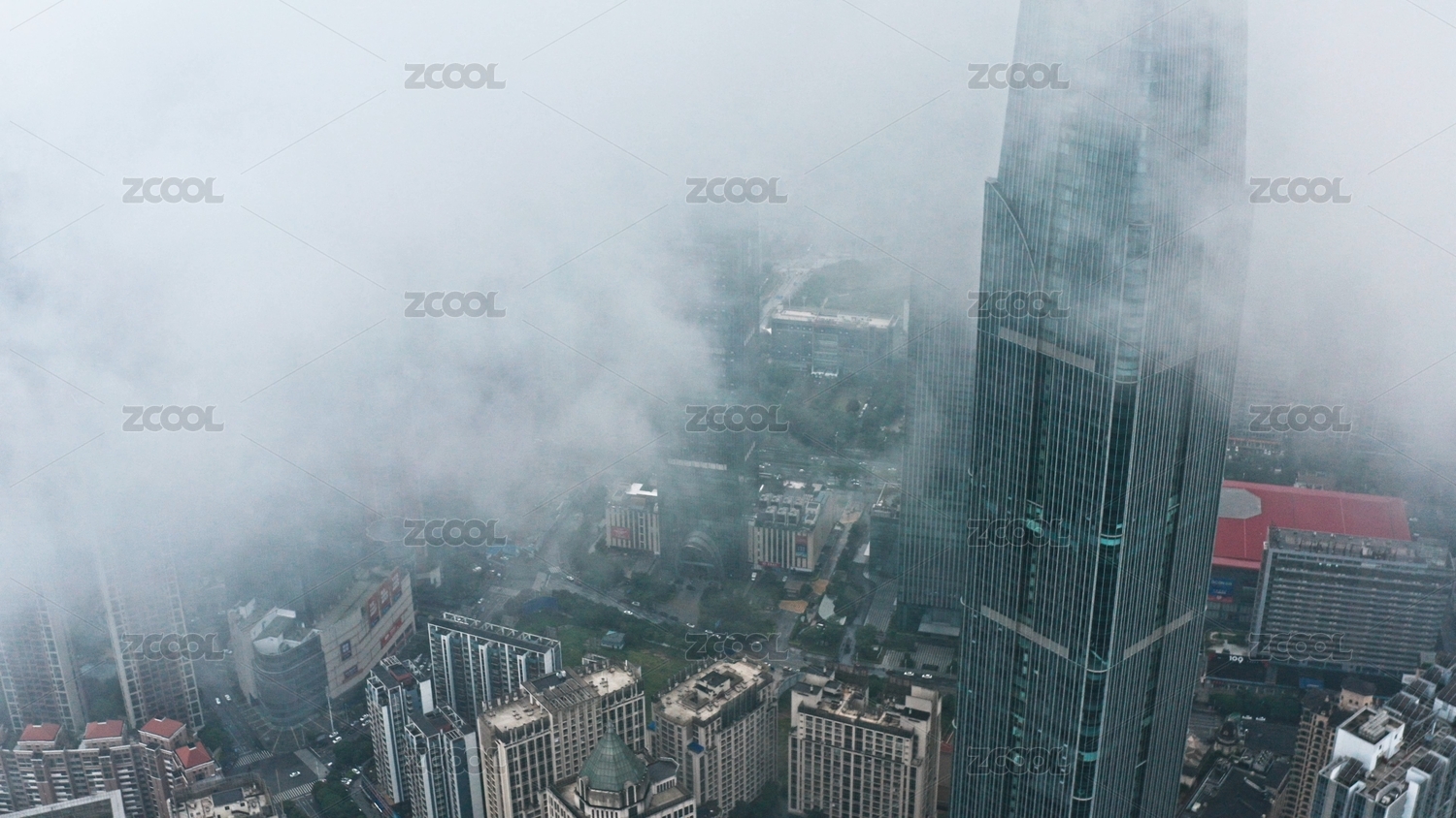 中国江苏南京新街口云雾仙境航拍风光