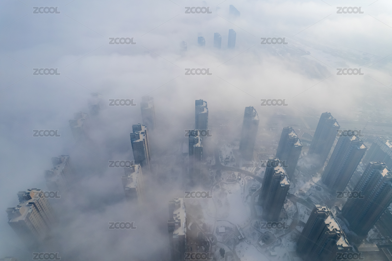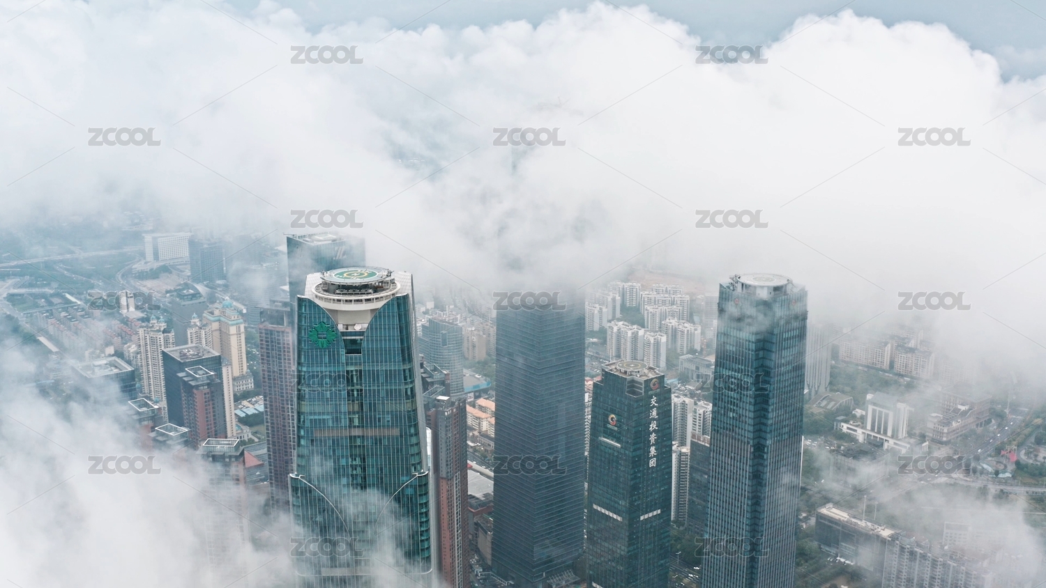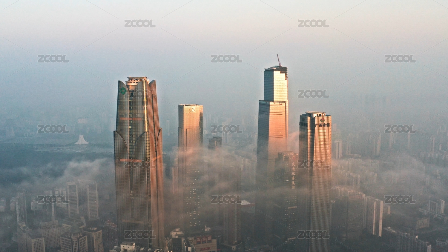 江西南昌红谷滩城市上空平流雾