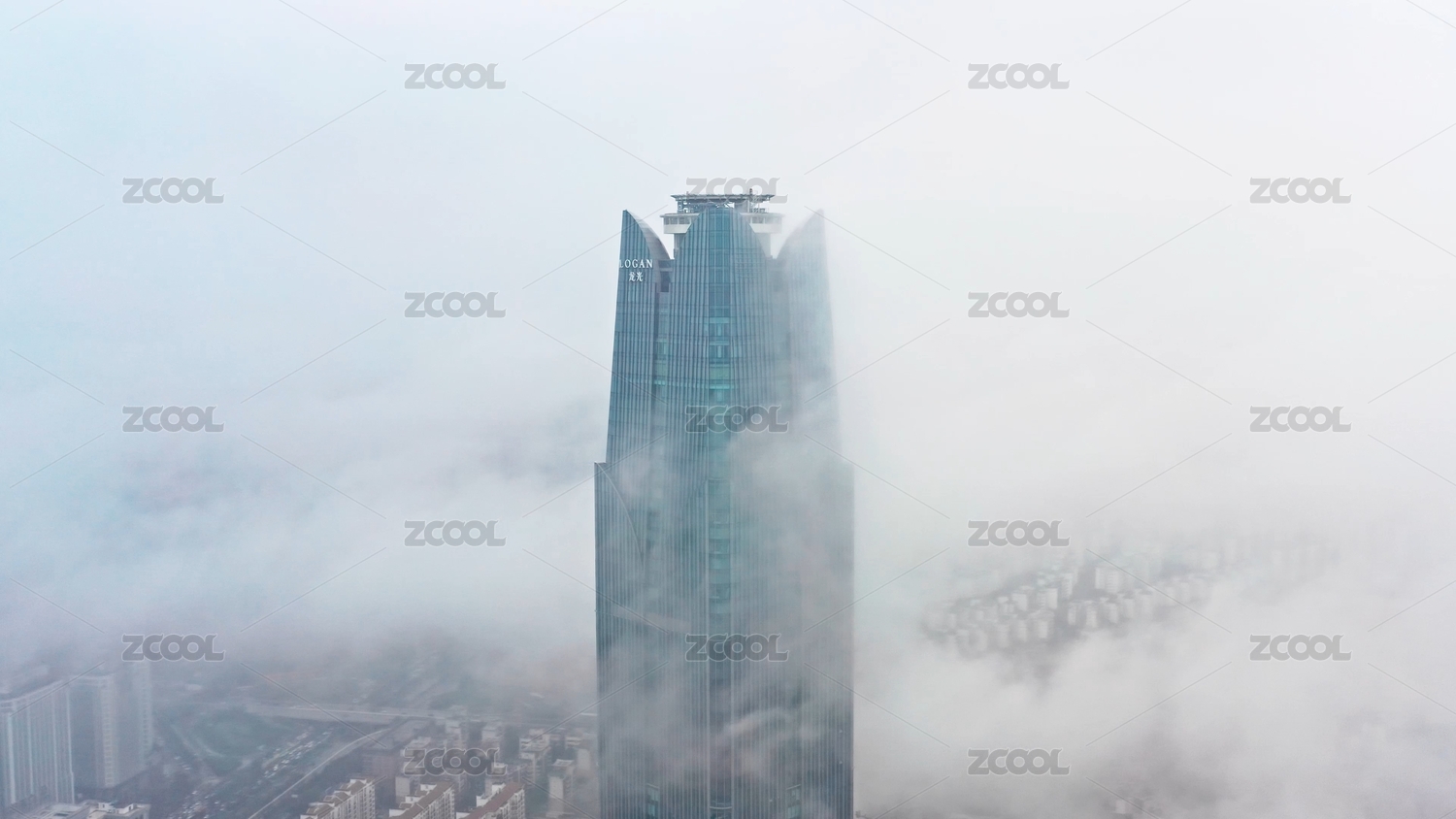 航拍云海中的南京地标紫峰大厦