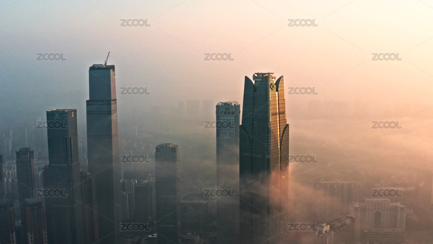 南宁城市雾天日出航拍