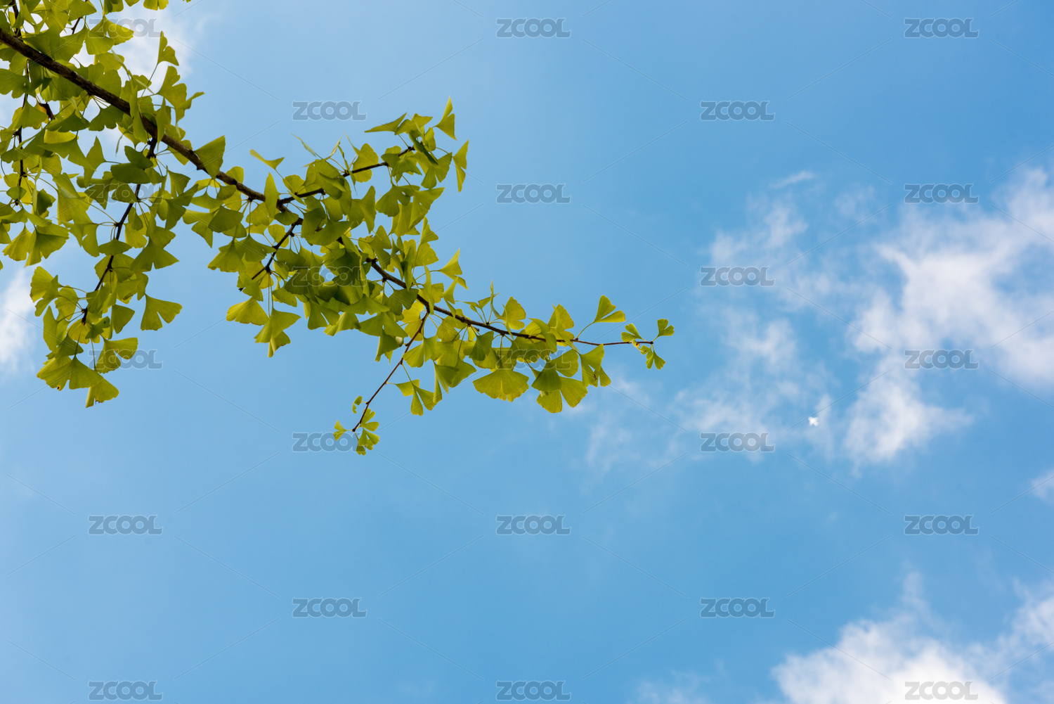 银杏,银杏叶,白果,药材,蓝天,白云,云彩,绿叶,中药材,大自然秋天