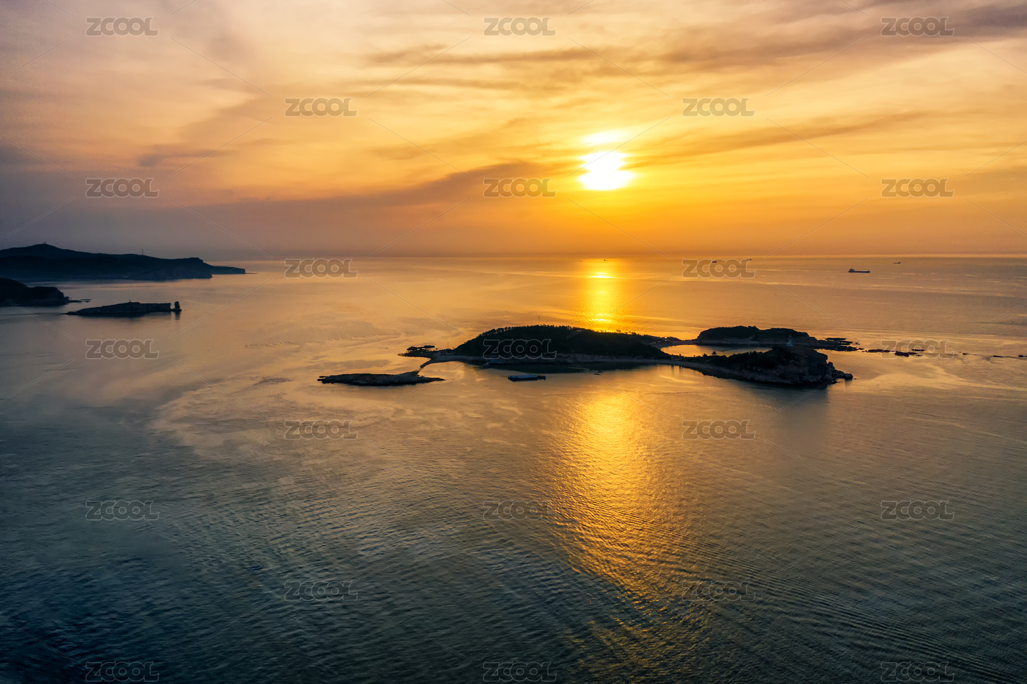 中国山东长岛县航拍海上风光