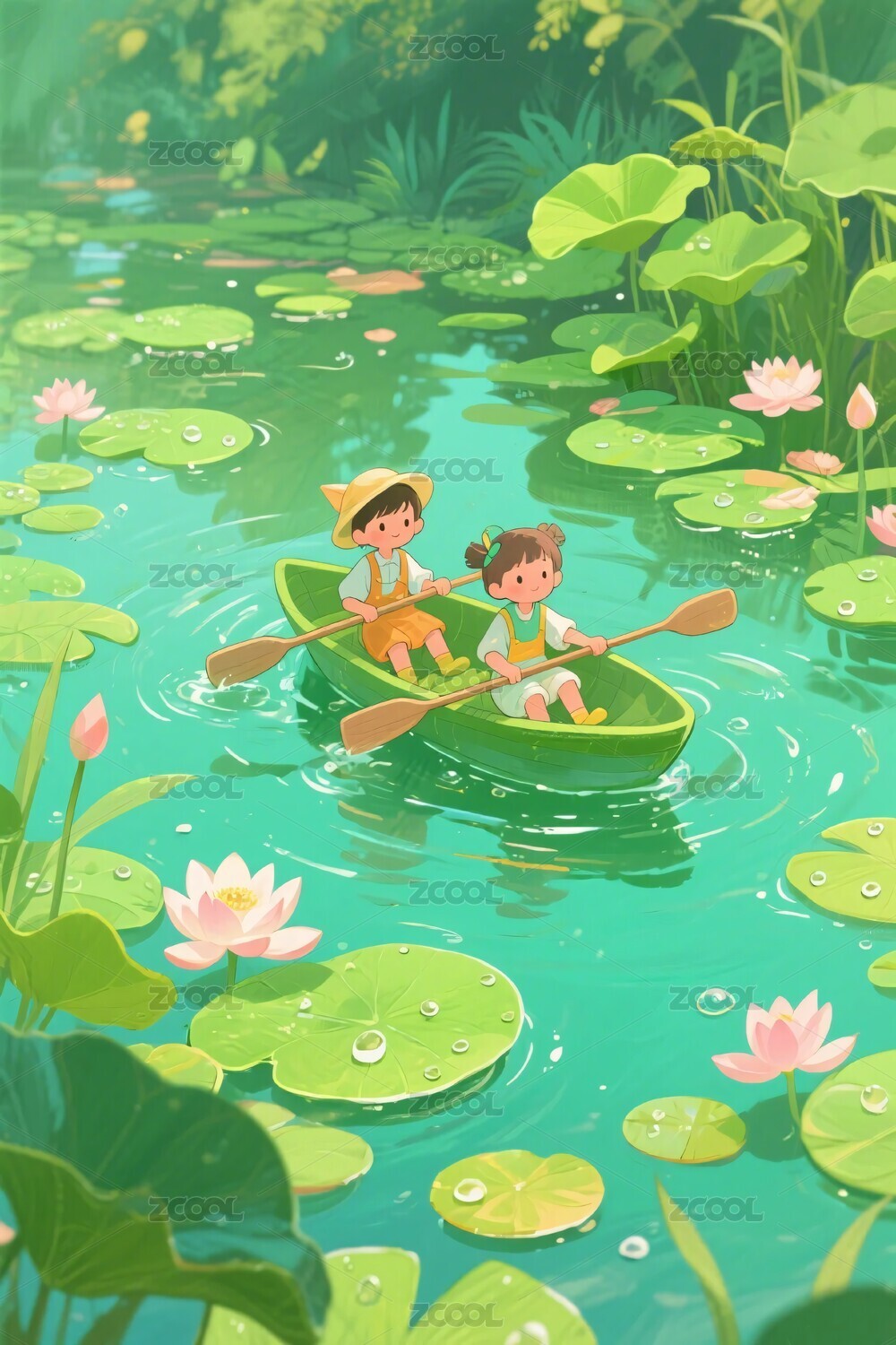 夏天,夏日,夏至,炎热,池塘,河,湖水,动漫,莲花,荷花