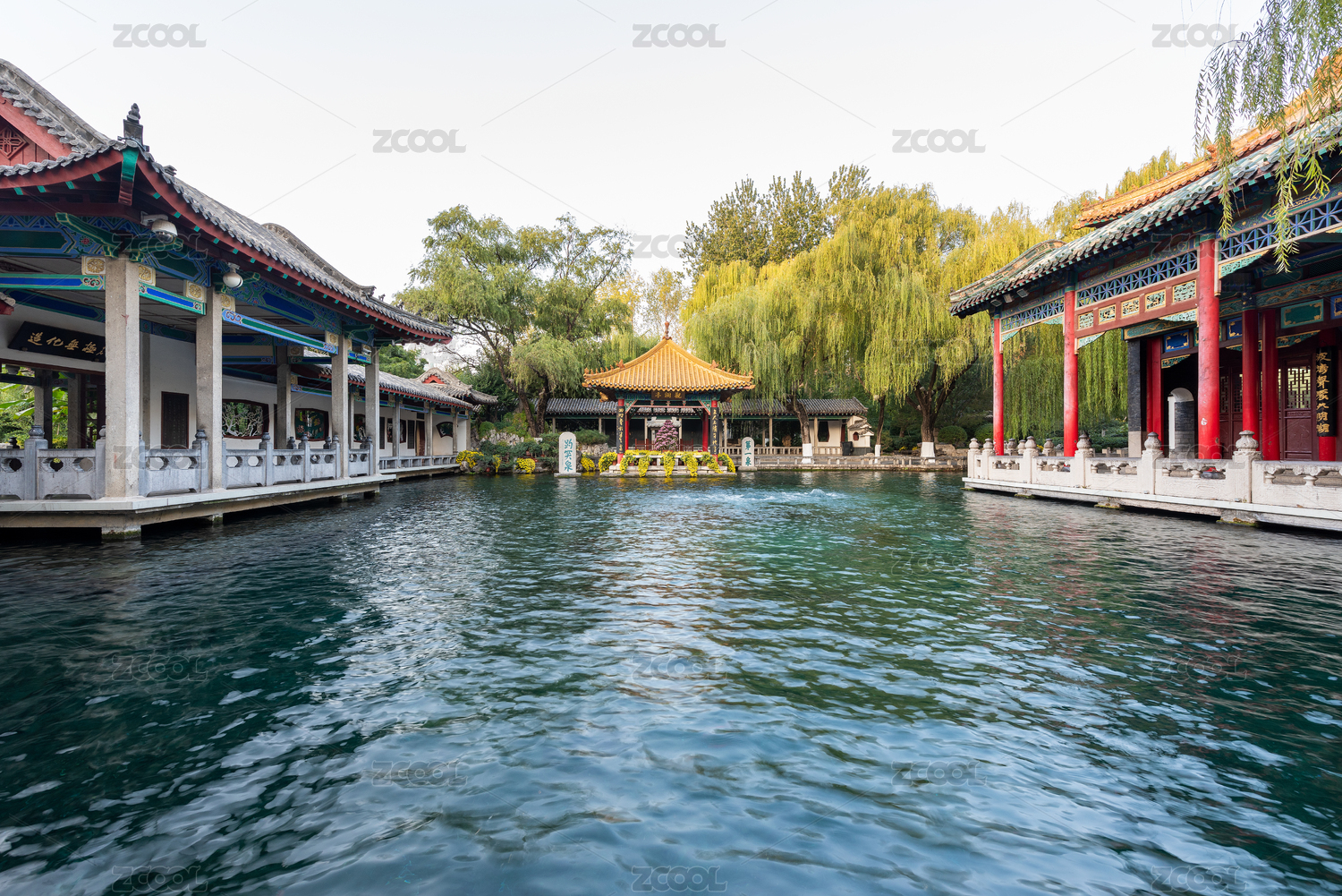 中国山东济南趵突泉公园之观澜亭和泺源堂