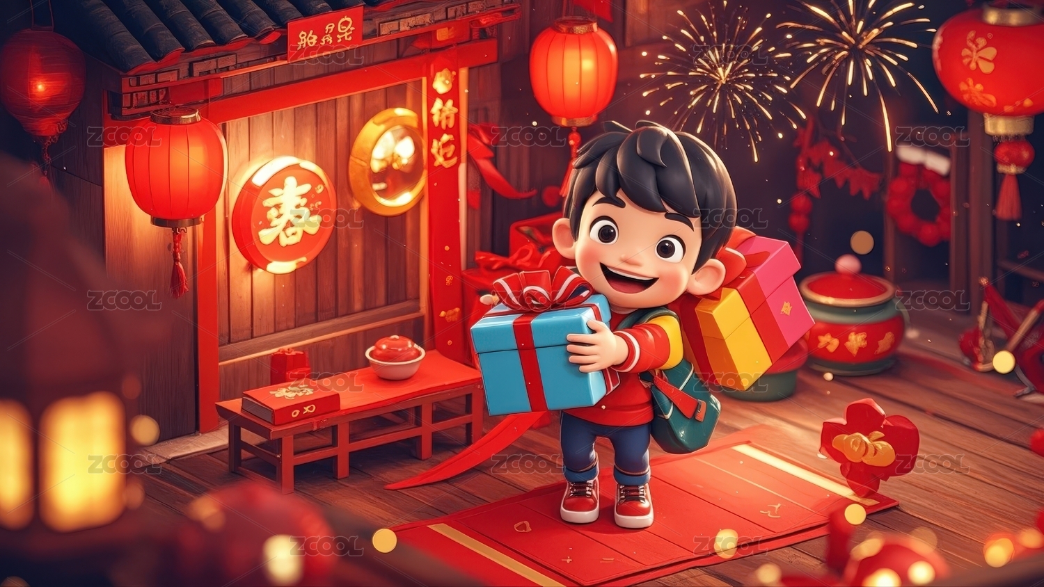 节日,自然,灯笼,女孩,春节,新年,生肖,庆祝,礼物,雪地
