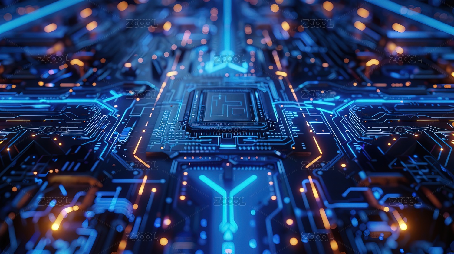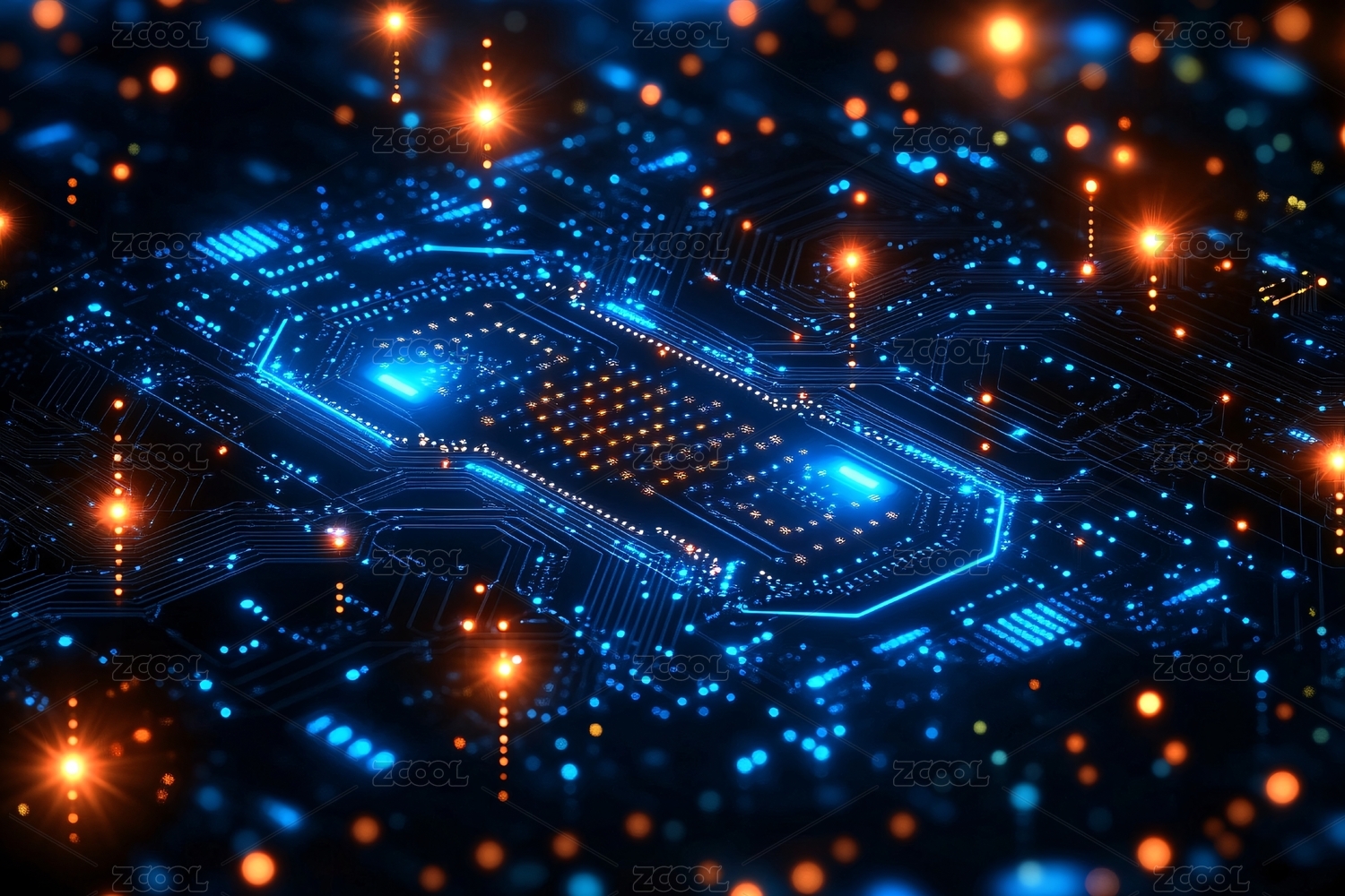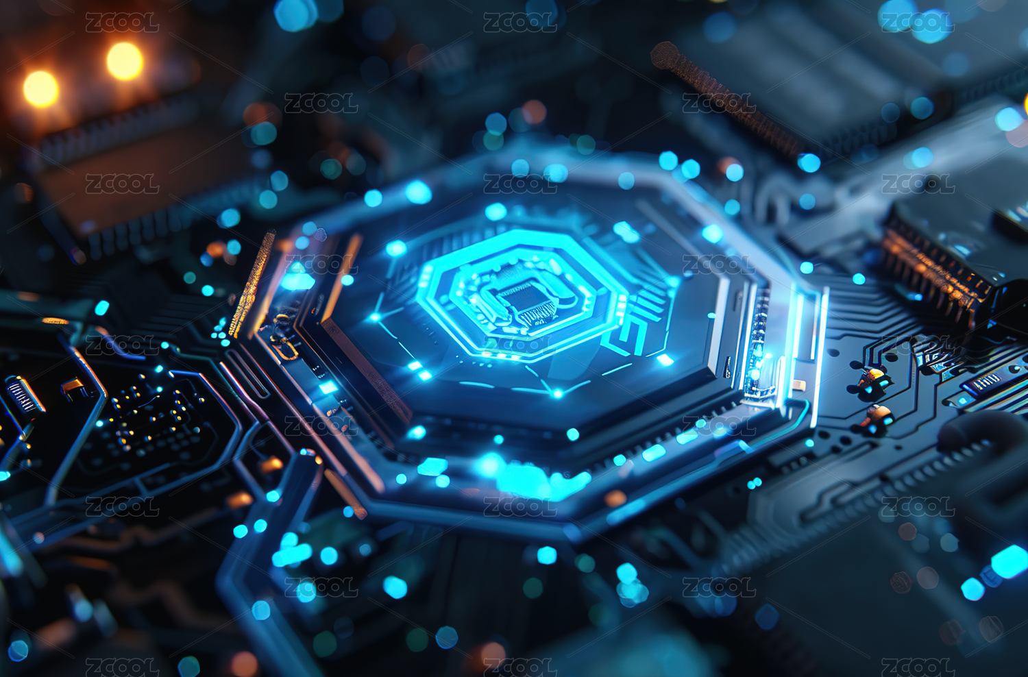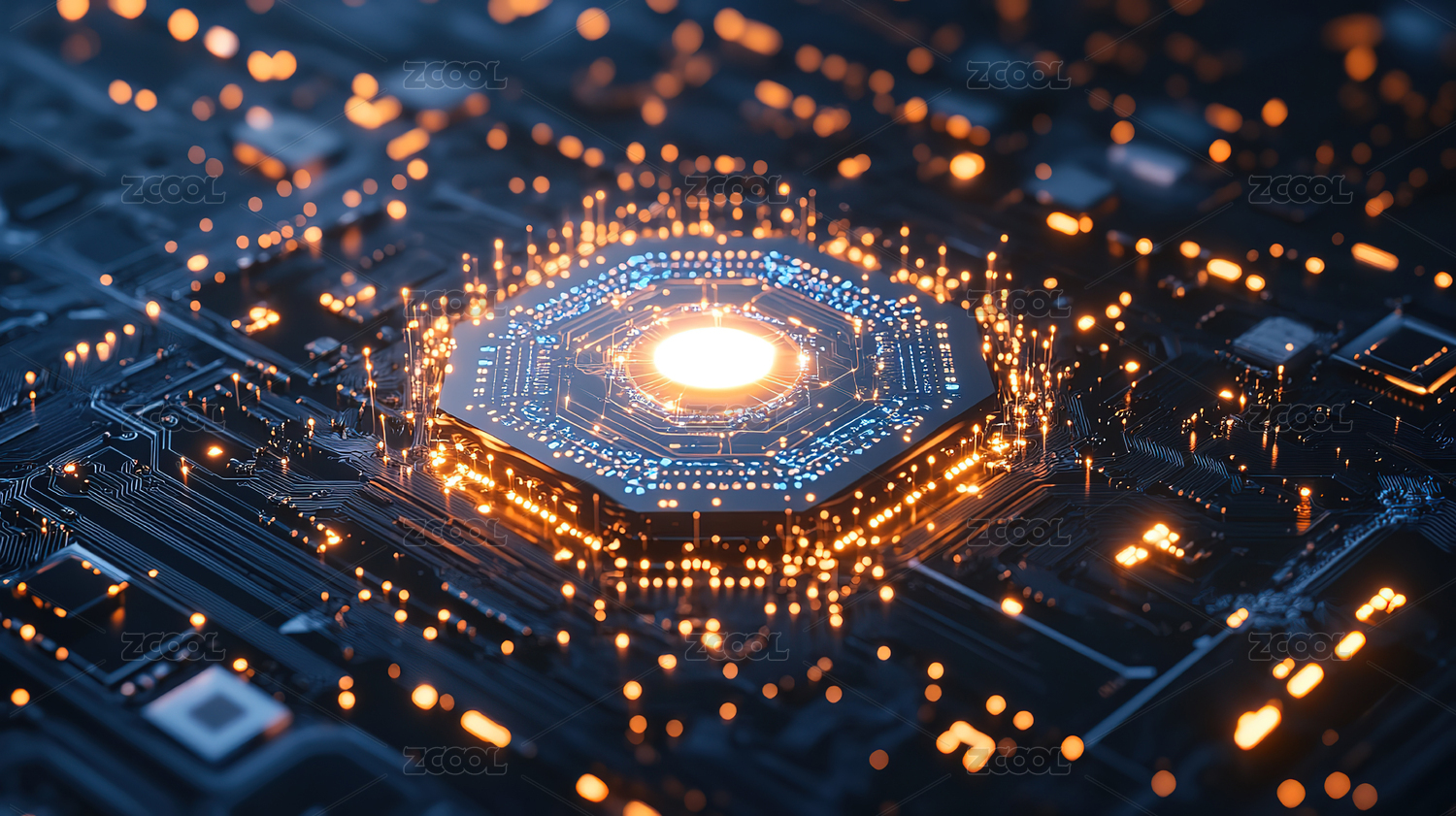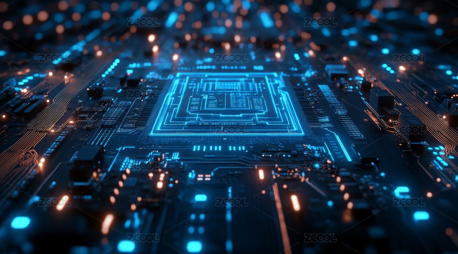 电路板特写与发光核心