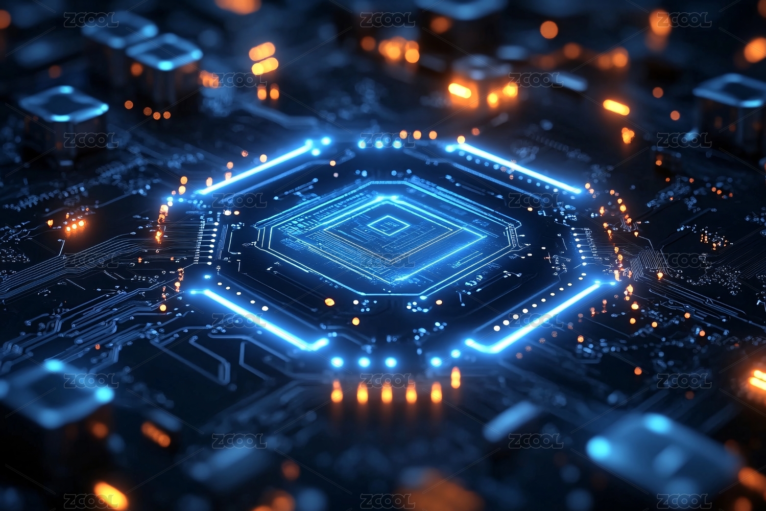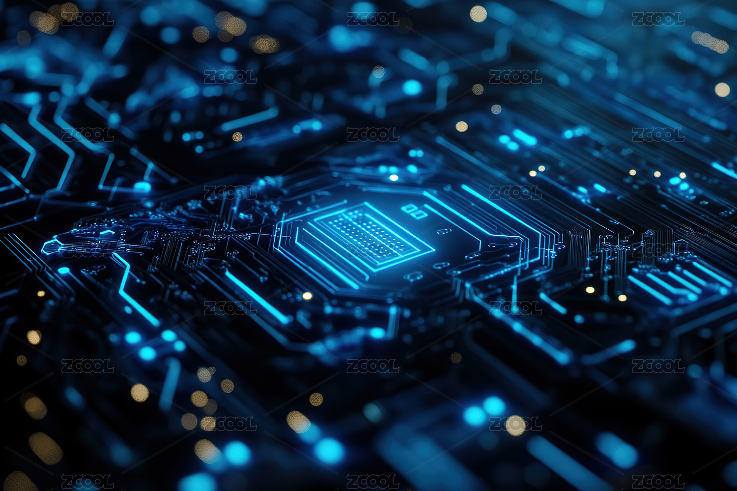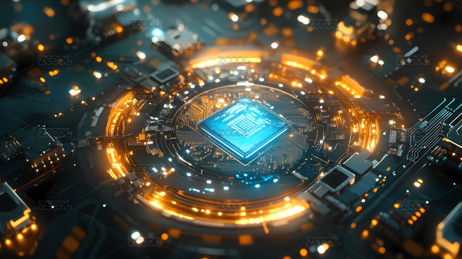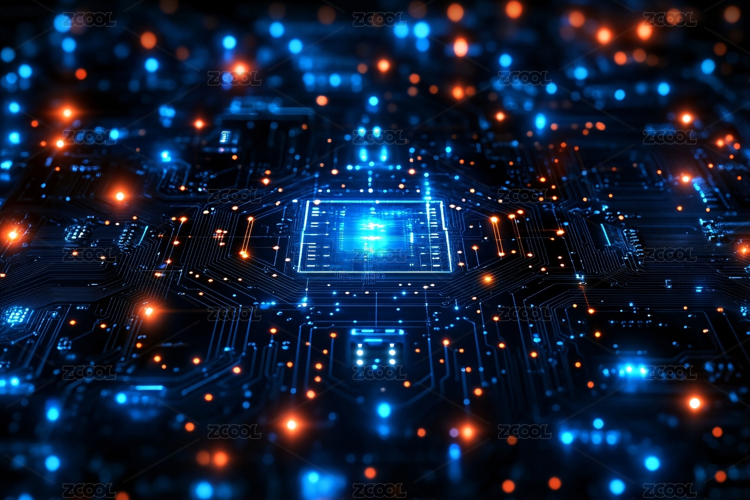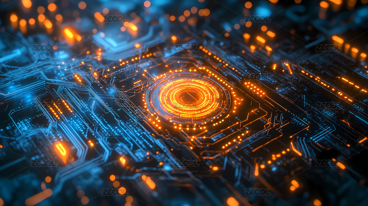 电路板特写与发光核心