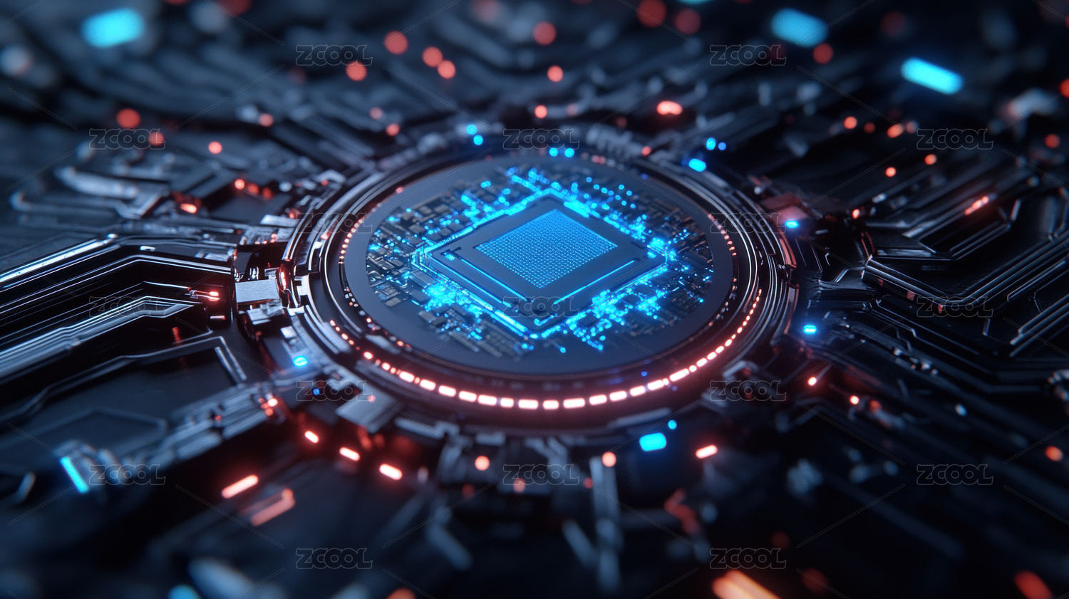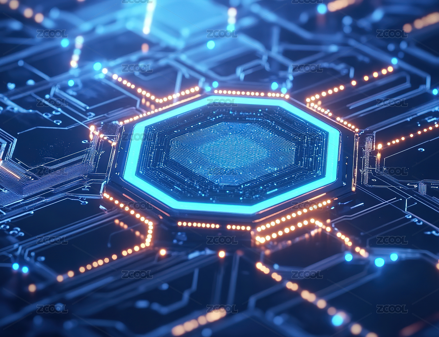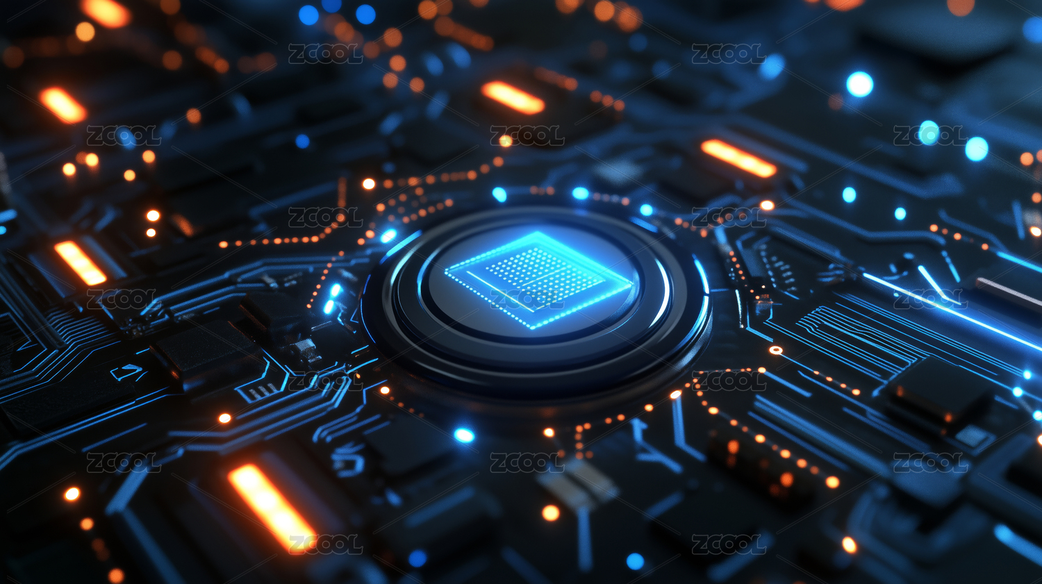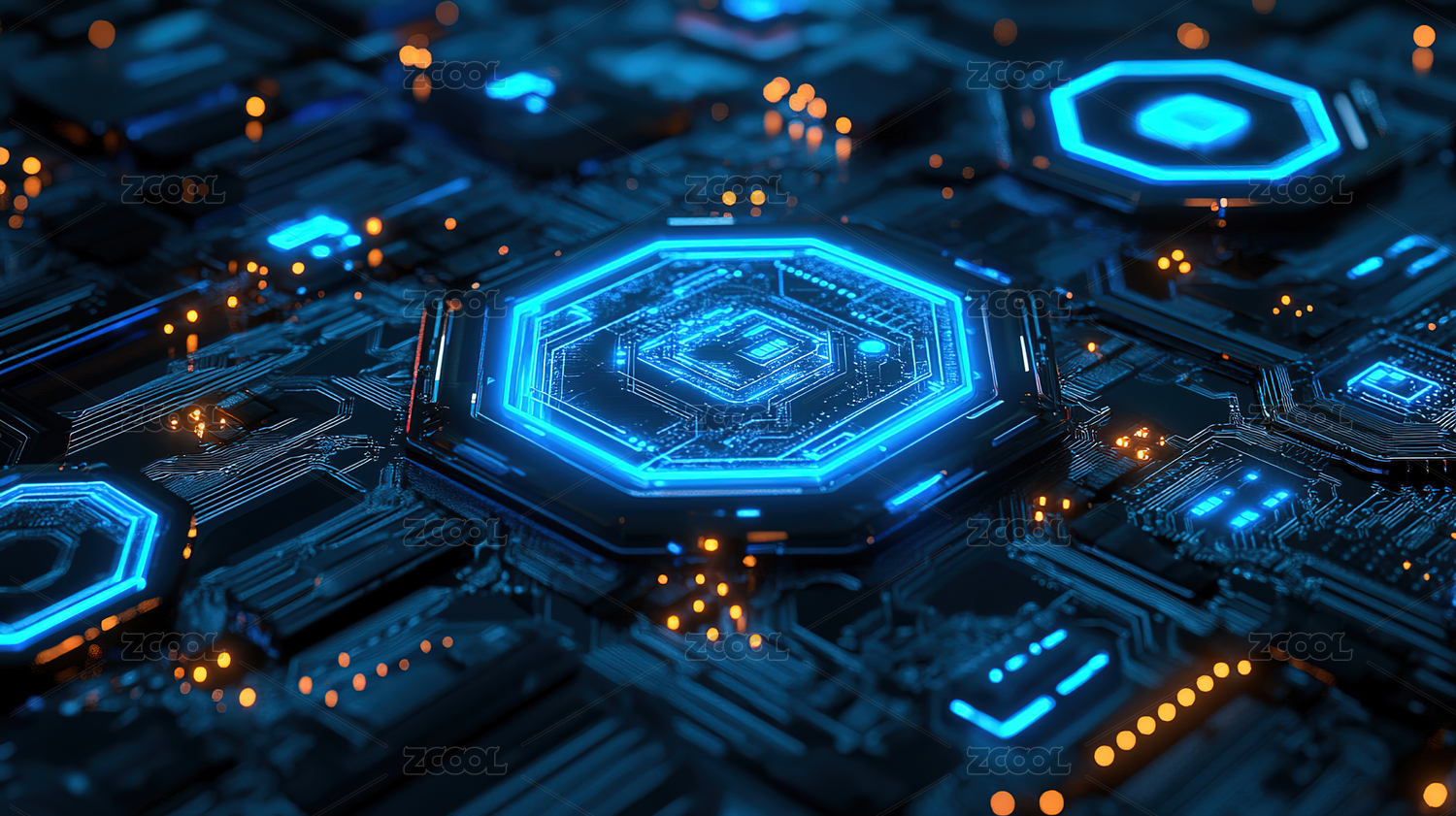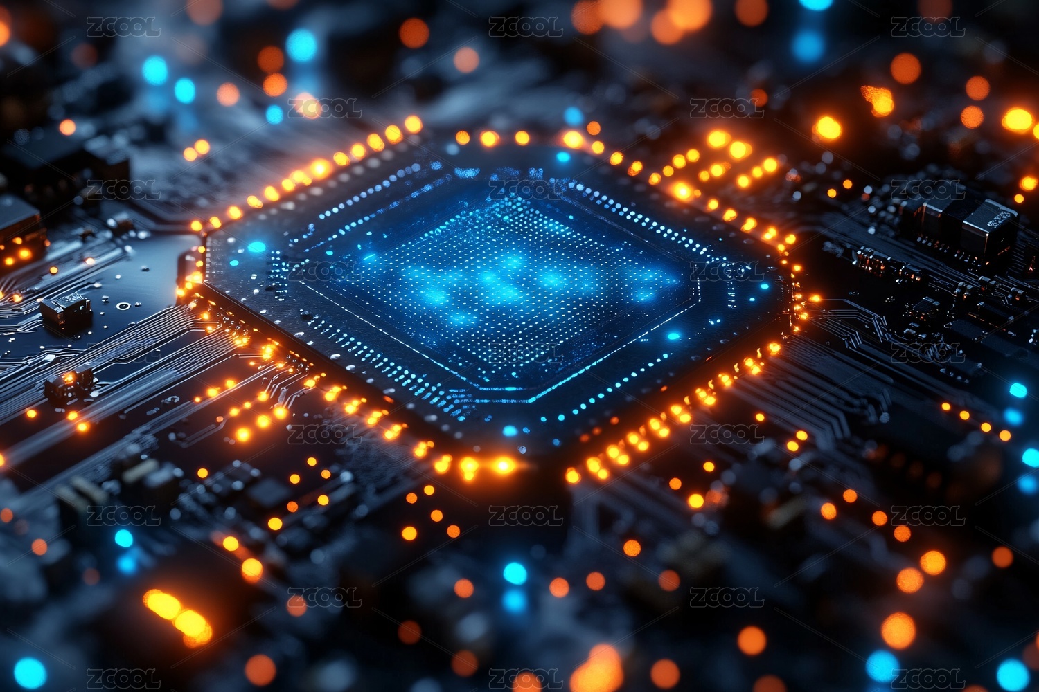 电路板特写与发光核心