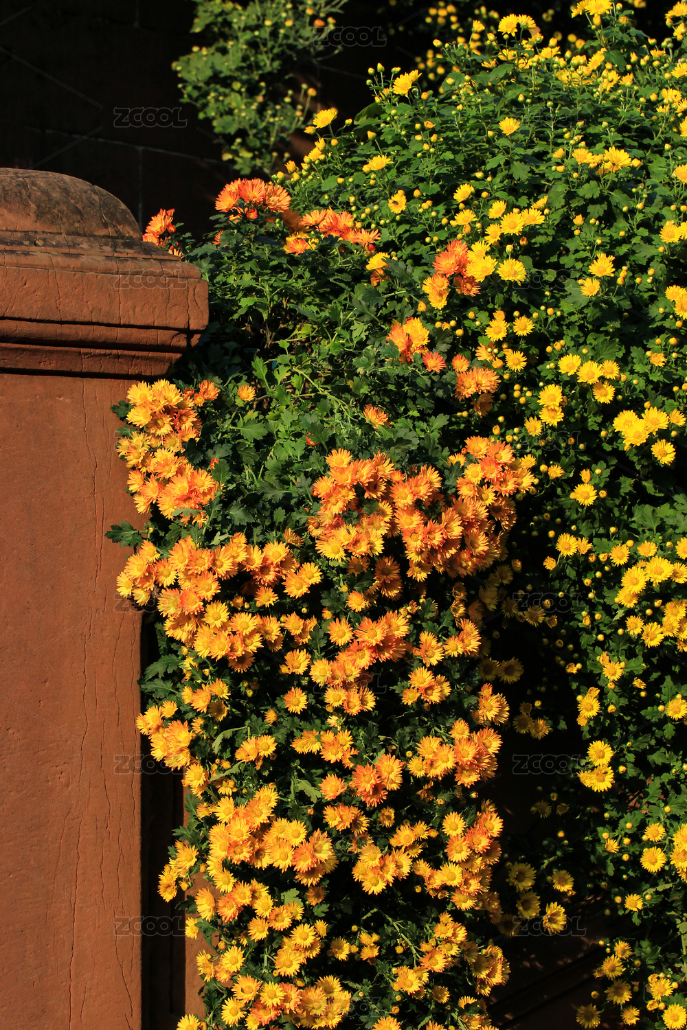秋天围栏上盛开的菊花