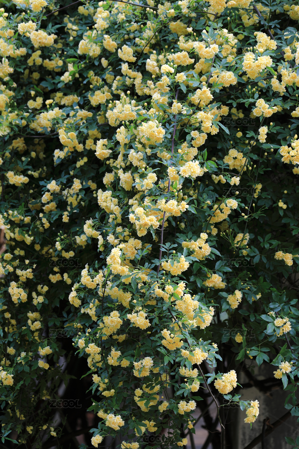 中国南京中山植物园盛开的黄木香花